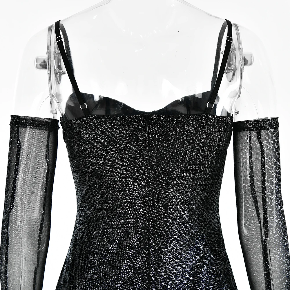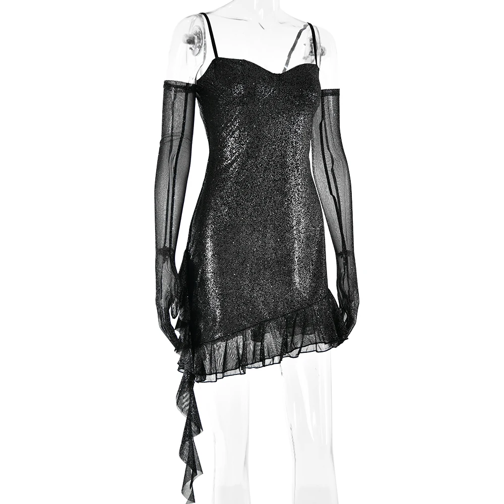 Sexy Spaghetti Strap Sleeveless Tight Dress Women Ruffle Edge Mesh Slim Backless Vesidos Party Club Nightclub Dress 2024