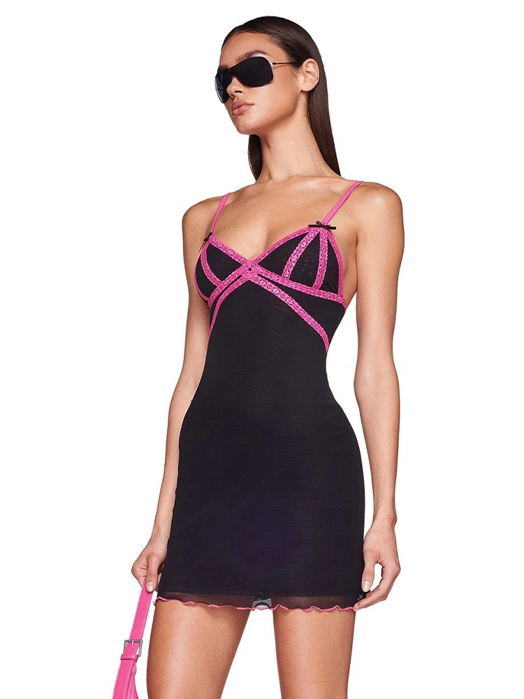 Sexy Splie Off Shoulder Lace Patchwork Party Evening Mini Dress Women 2024 New Solid V Neck Slim Backless Bow Dresses