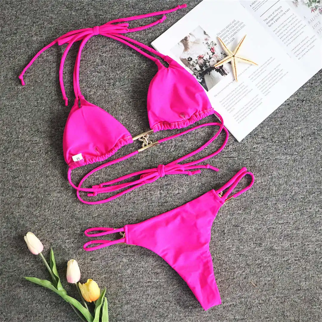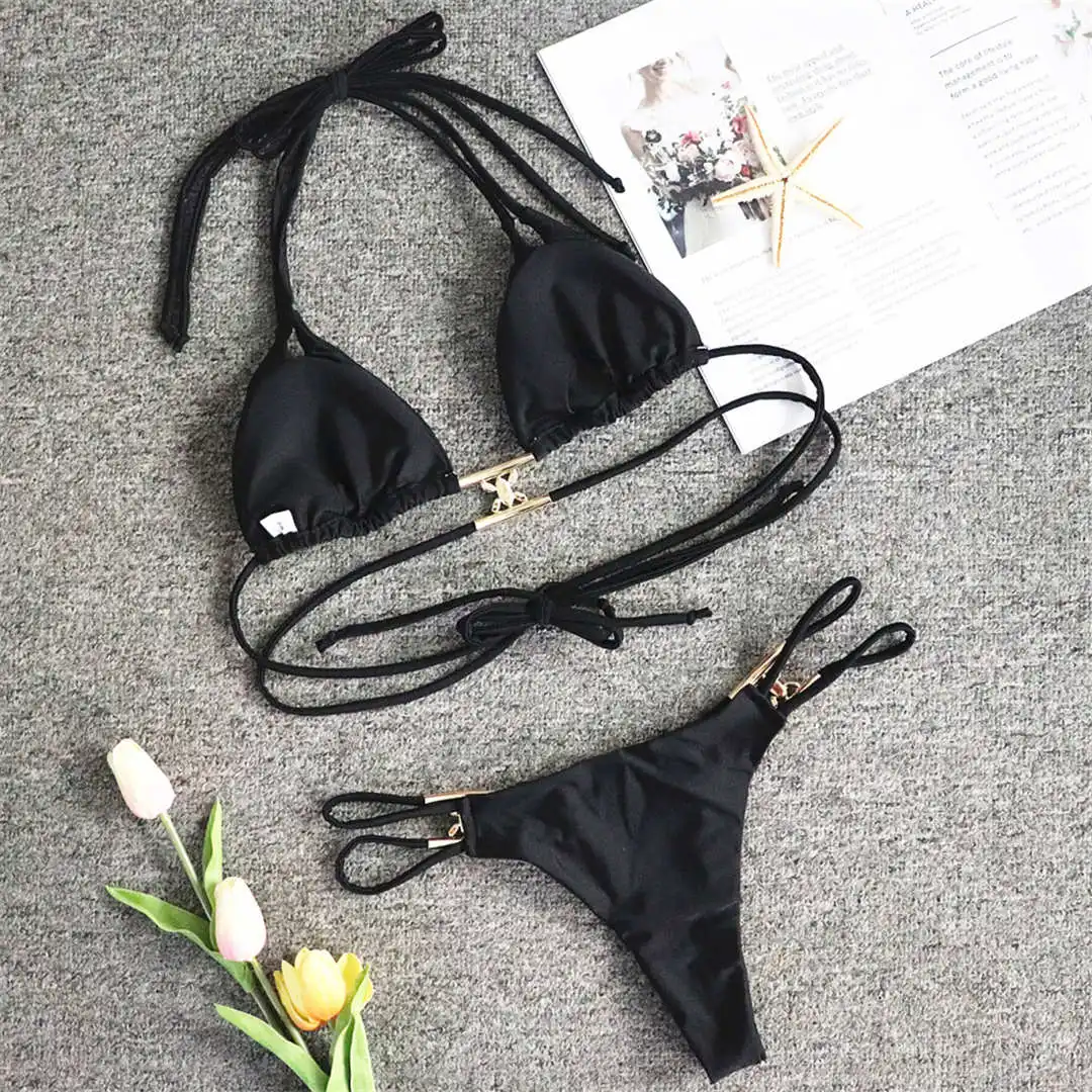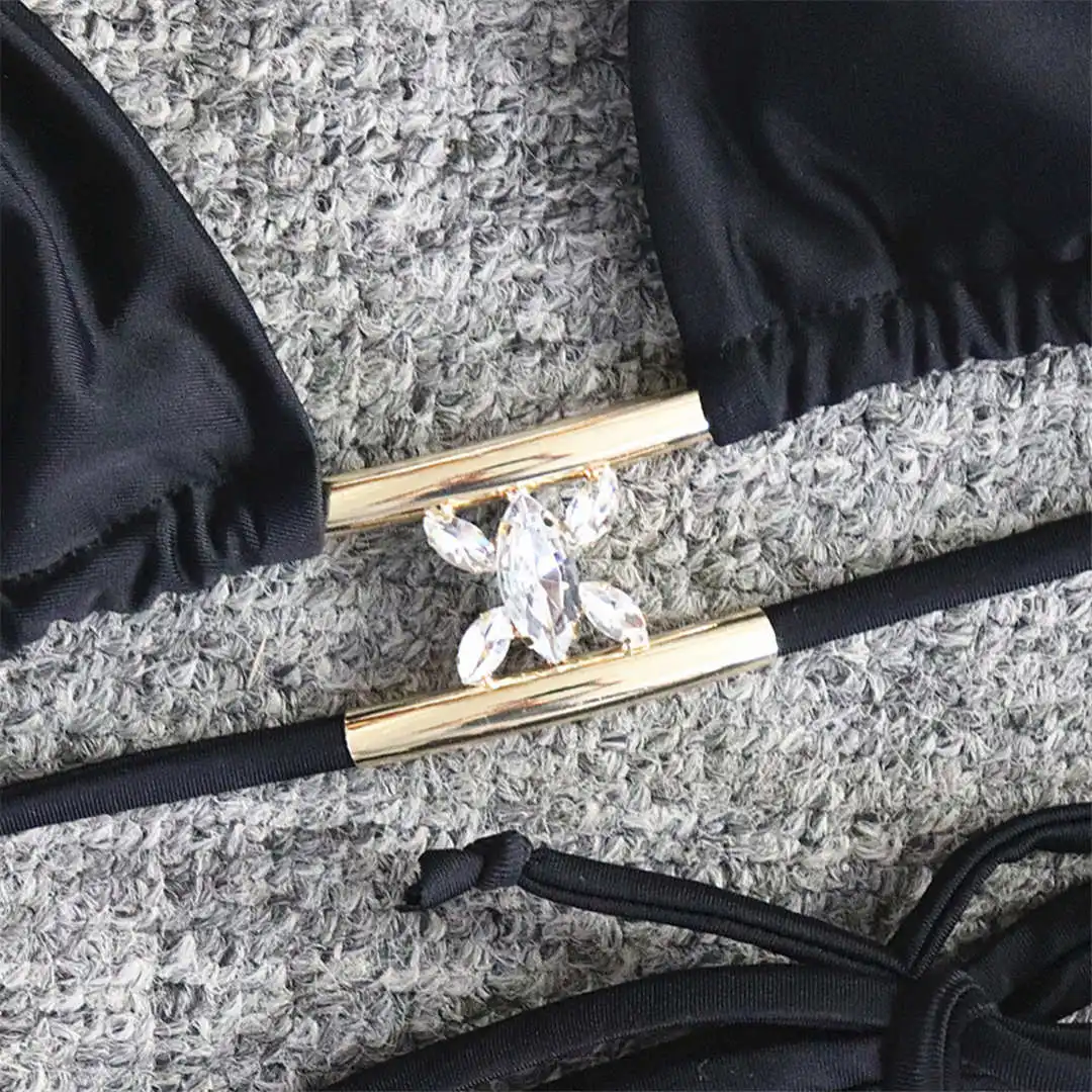 Sexy Strappy Bling Diamond Bikini Female Swimsuit Women Swimwear Two-pieces Bikini set Halter Bather Bathing Suit Swim V2387