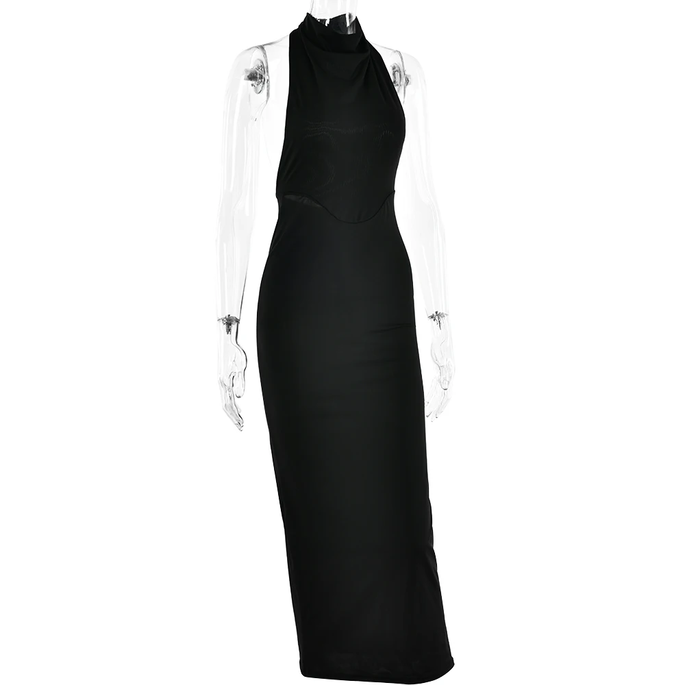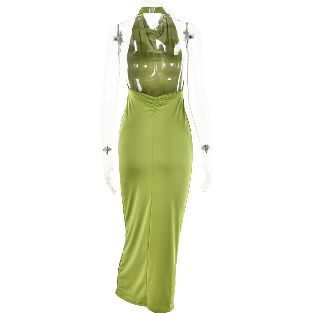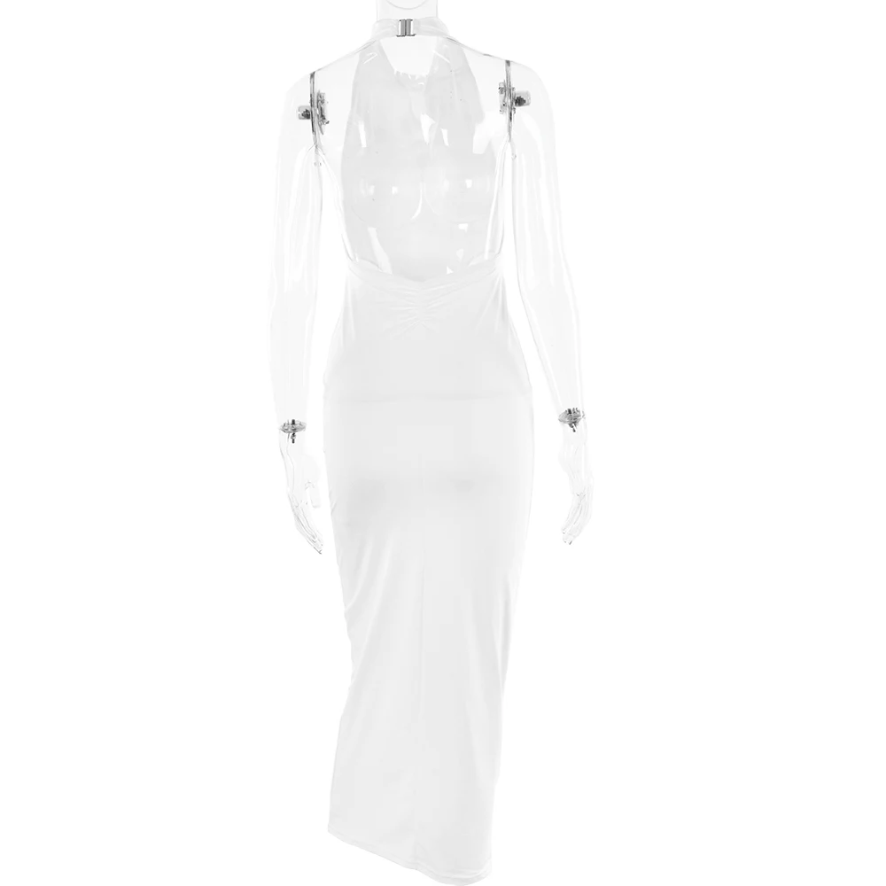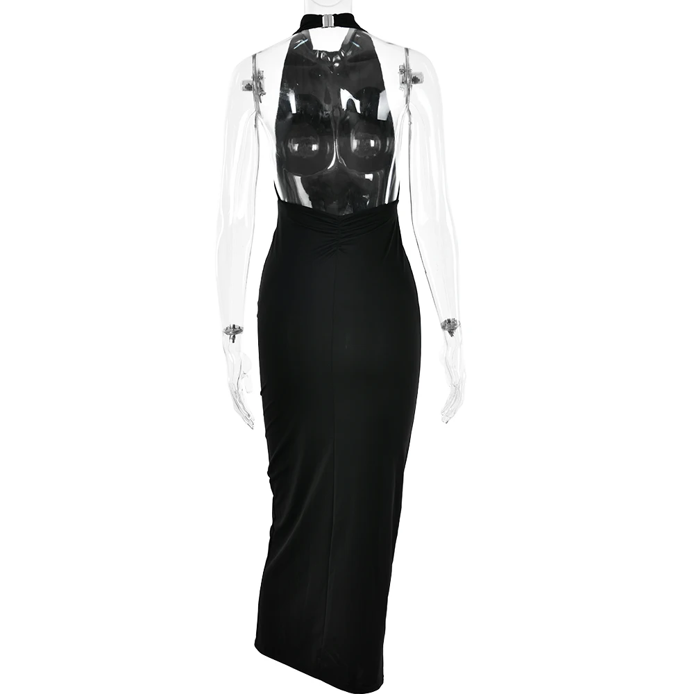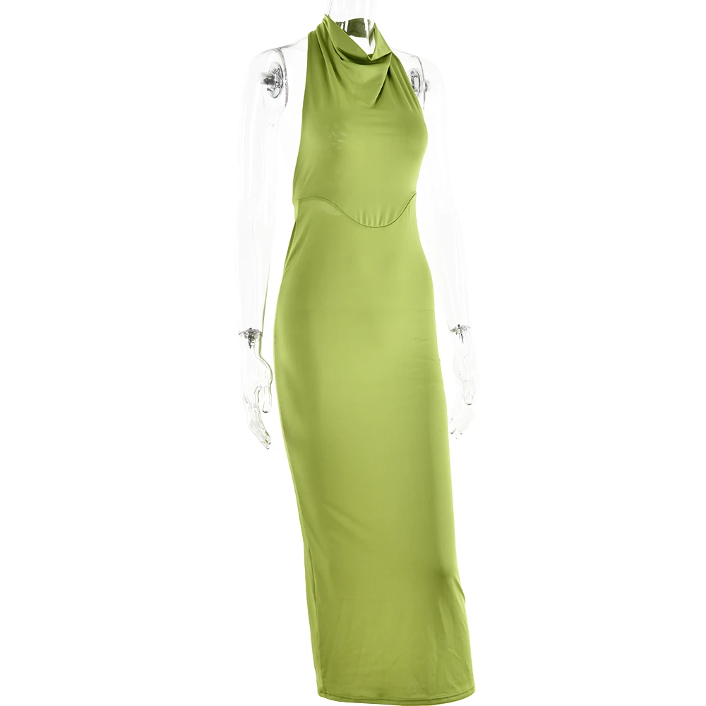 Sexy Swinging Collar High Slit Women Maxi Dress Backless Slim Fit Dress Party Dance Nightclub Female Clothing 2023 New