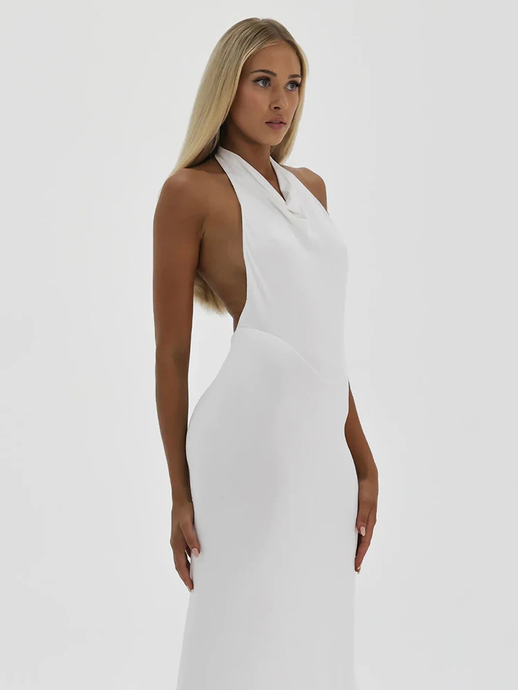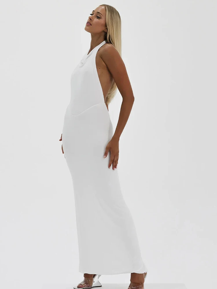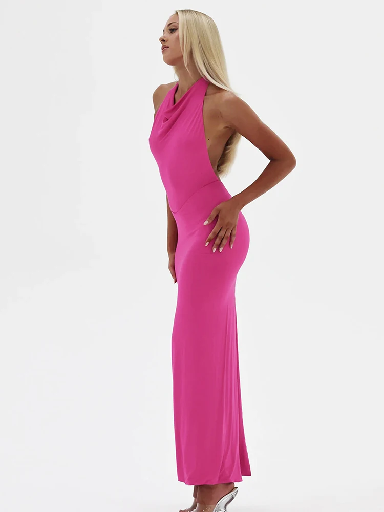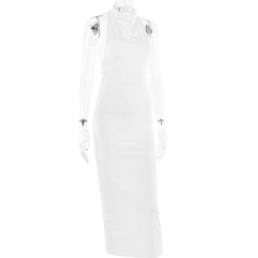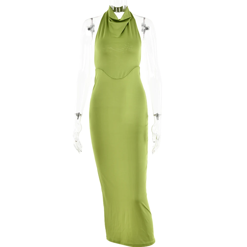 Sexy Swinging Collar High Slit Women Maxi Dress Backless Slim Fit Dress Party Dance Nightclub Female Clothing 2023 New