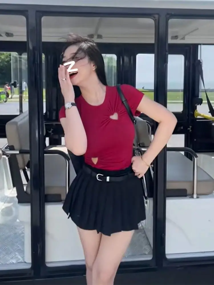 Sexy Woman T Shirts Y2k Tops Short Sleeve O-necj Tunic Tees Fashion Summer Camisetas Hollow Out Korean Tshirts 2024 Ropa Mujer