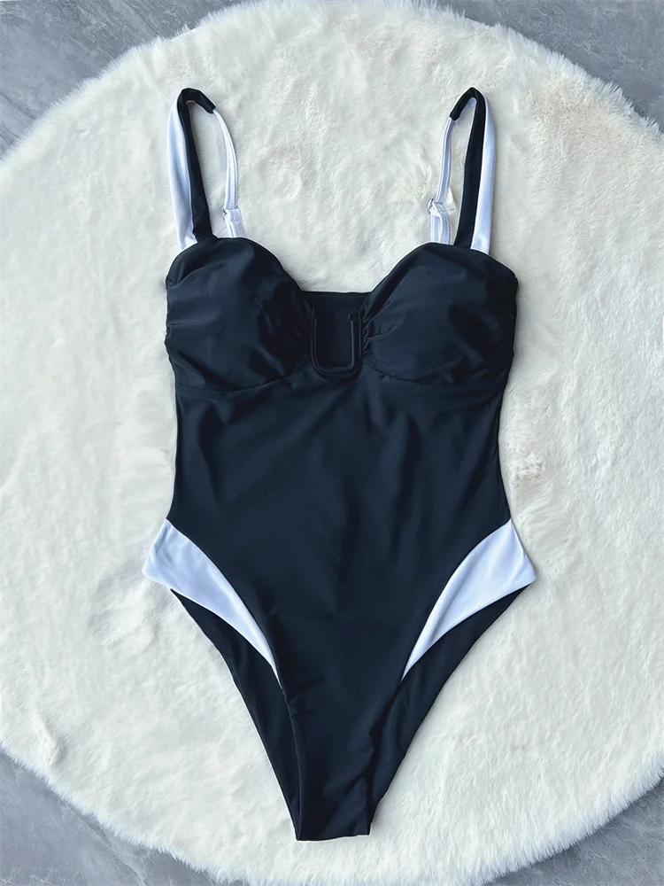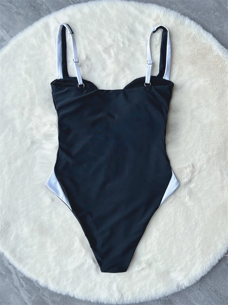 Sexy Women One Piece Swimsuit Female Swimwear Backless Patchwork Brazilian Monokini Swimming Suit Beachwear
