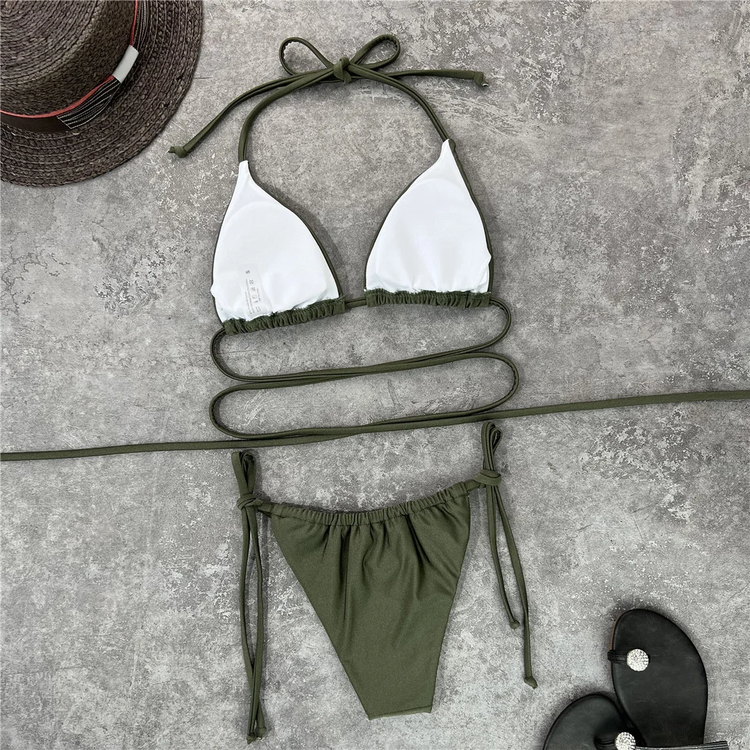 Sexy Wrap Arround Bikini Women Swimsuit Female Swimwear Two-pieces Bikini set Brazilian Bather Bathing Suit Swim Lady V1229
