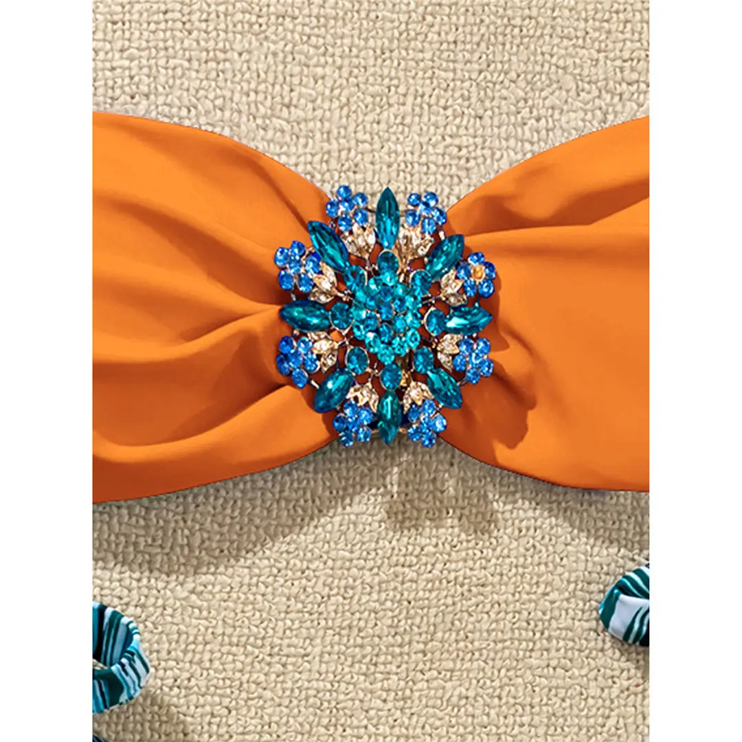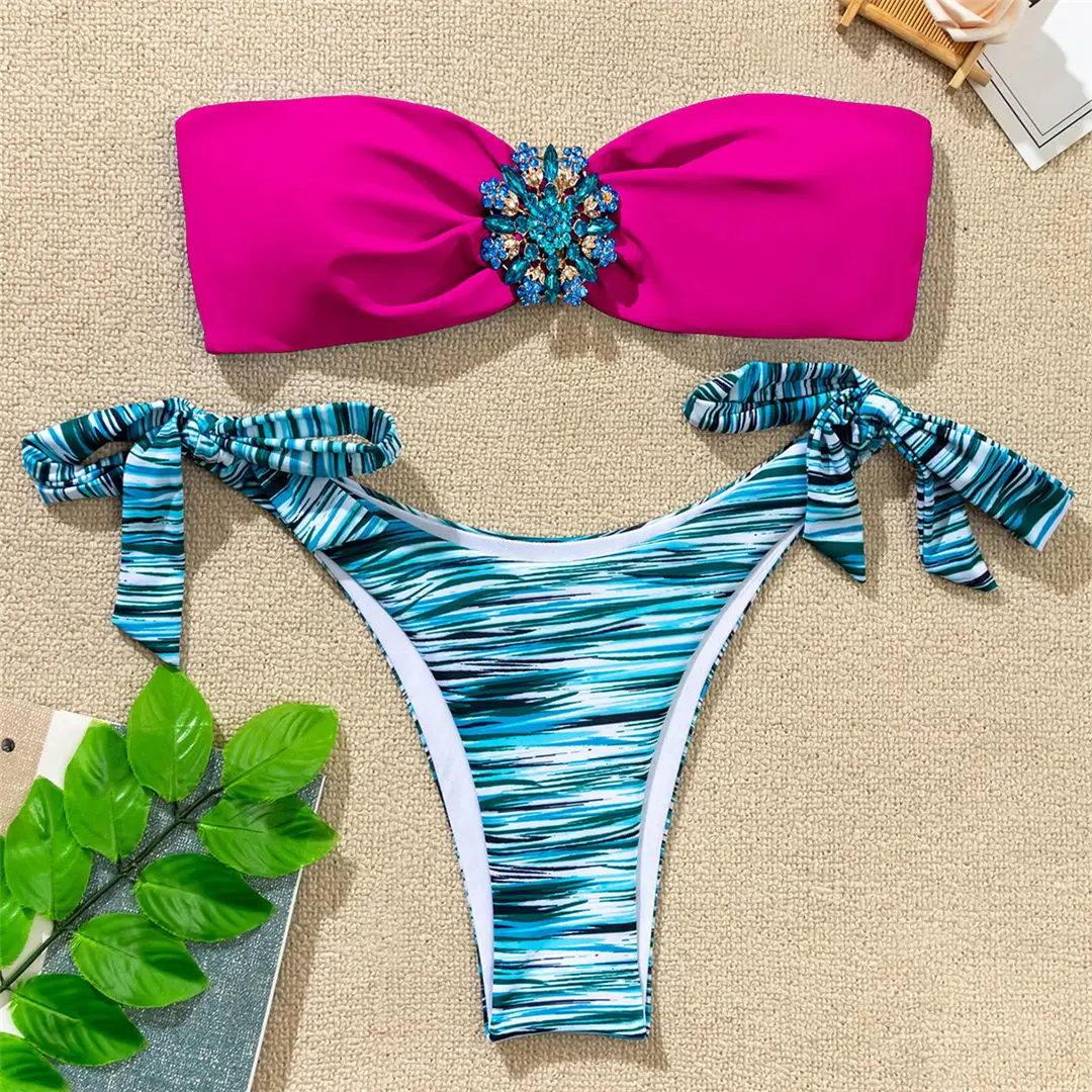 Shiny Rhinestone Jewelry Strapless Bikini Female Swimsuit Women Swimwear Two-pieces Bikini set Bather Bathing Suit Swim V3066O