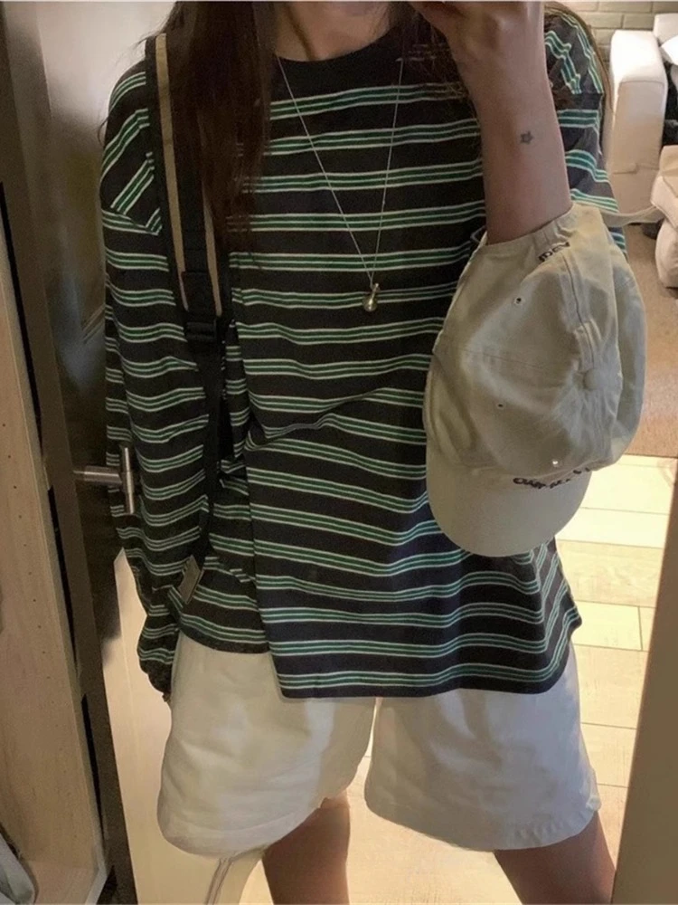 Simple Korean Woman T Shirts 2024 Ropa Mujer Vintage Long Sleeve Loose Tees Fashion Camisetas Casual Striped Y2k Tshirt Tops