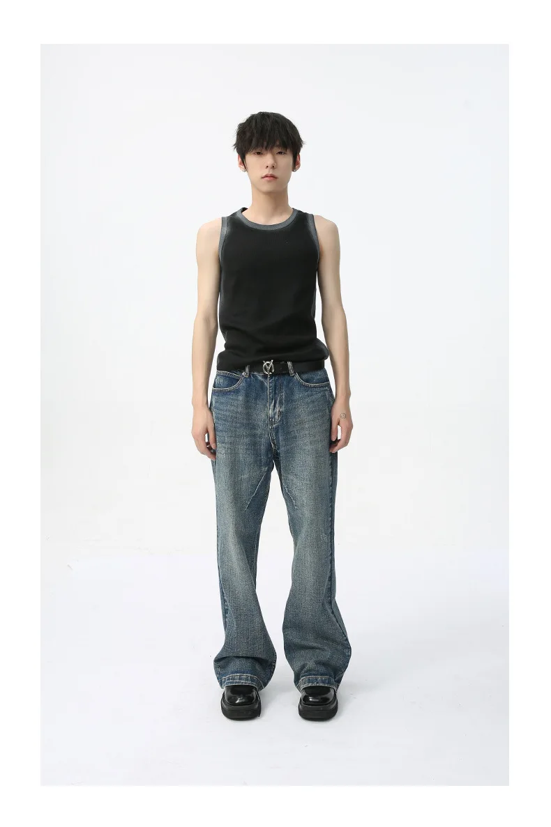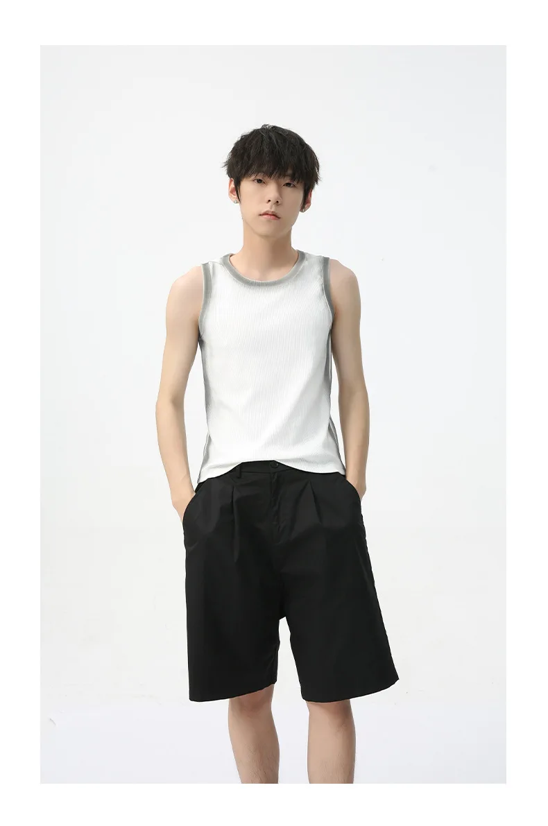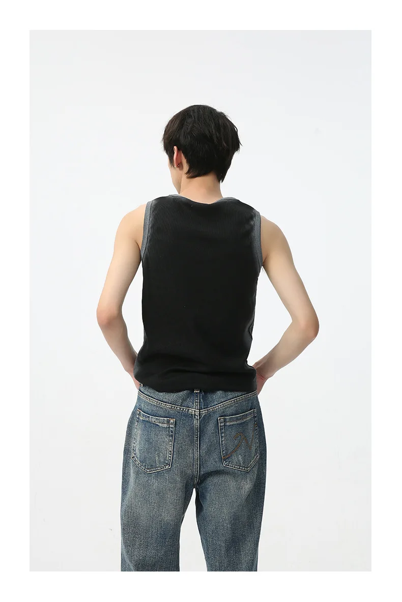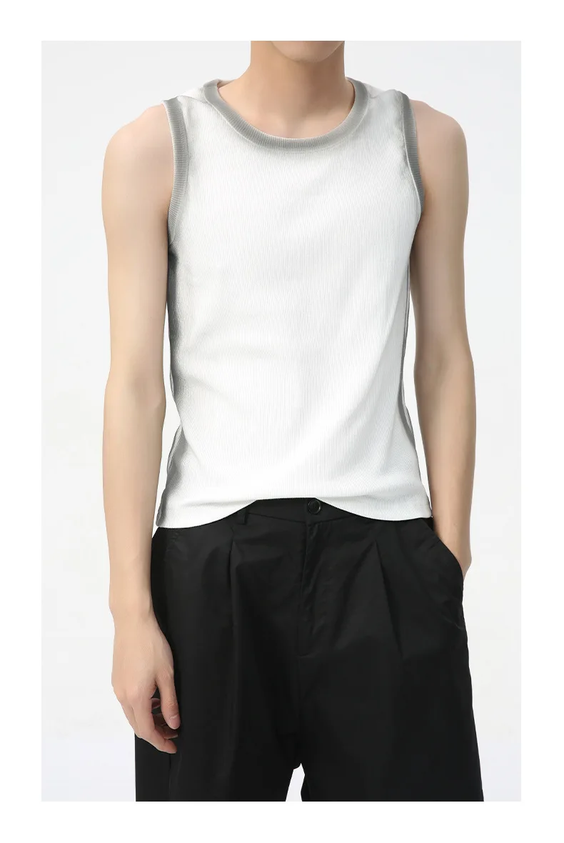 Simple Slim Men's Pullover Tank Tops Round Neck Sleeveless Male Casual Clothing New Summer Trend Contrast Color 9C6151