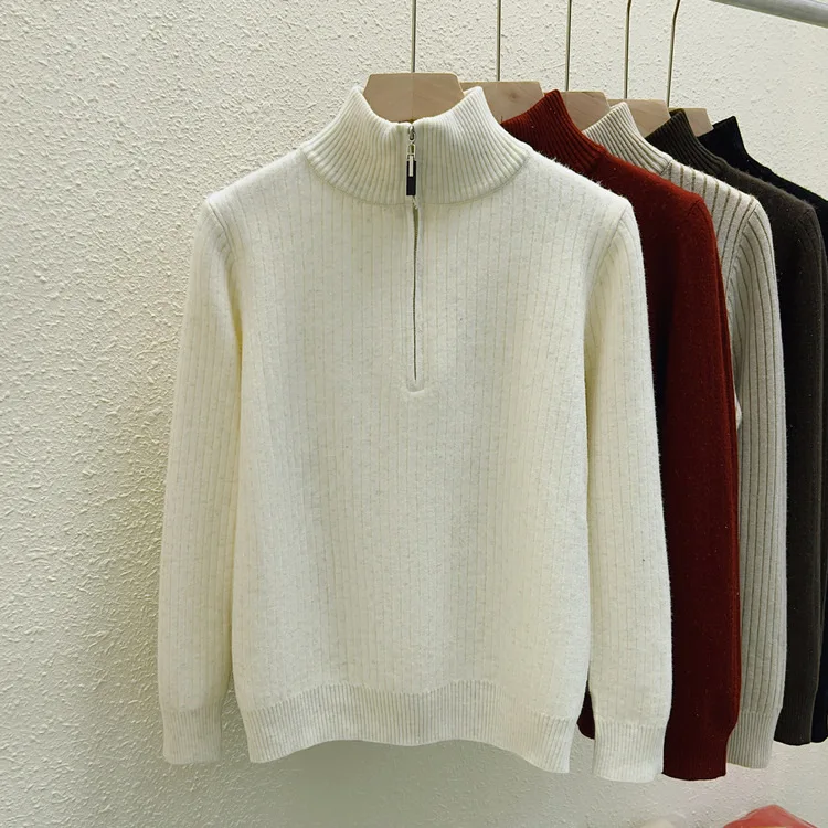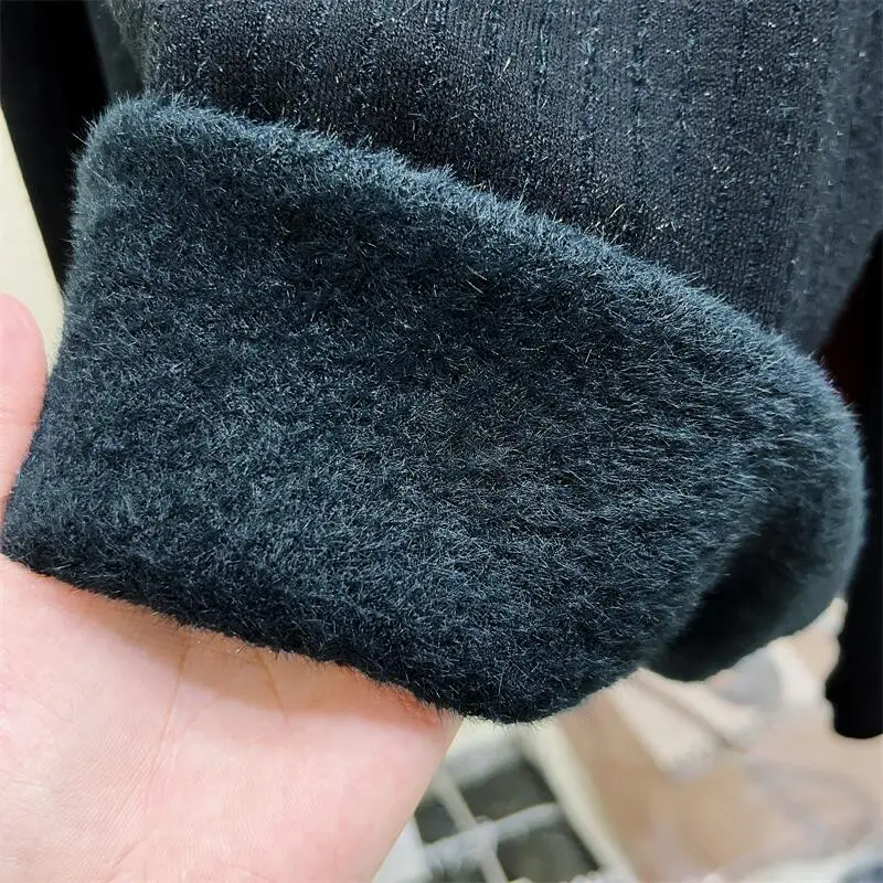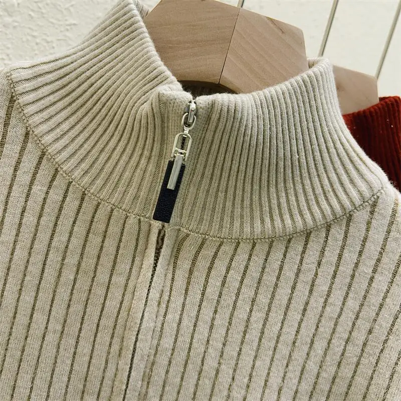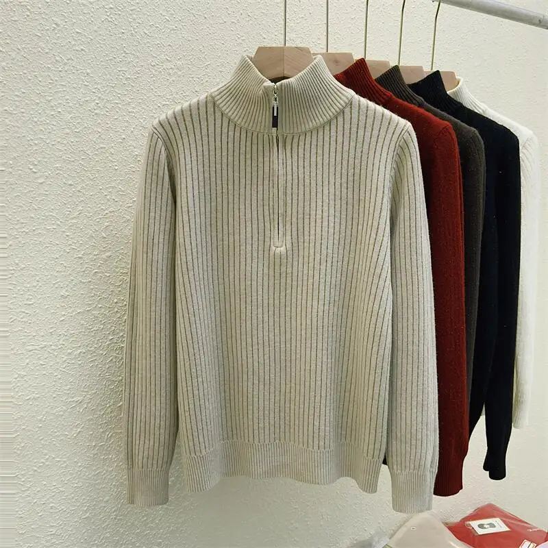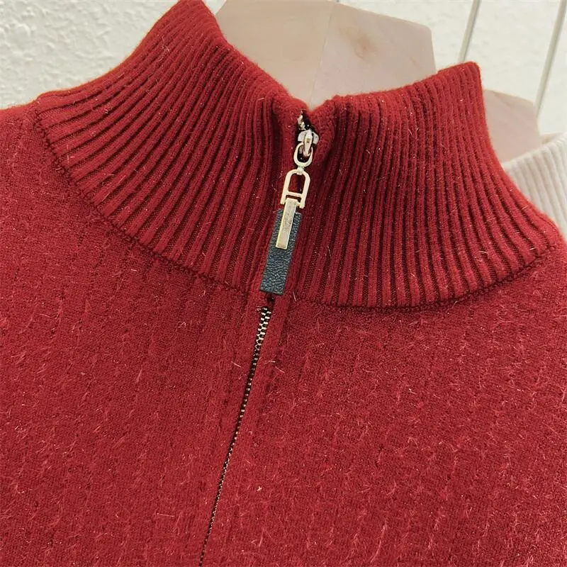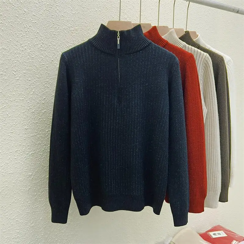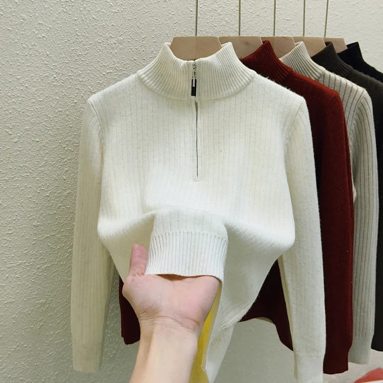 Simplicity 2024 Autumn Winter Solid Velvet Elegant Festival Sweater Korean Fashion Women Long Sleeve Half Zipper Knit Tops Thick