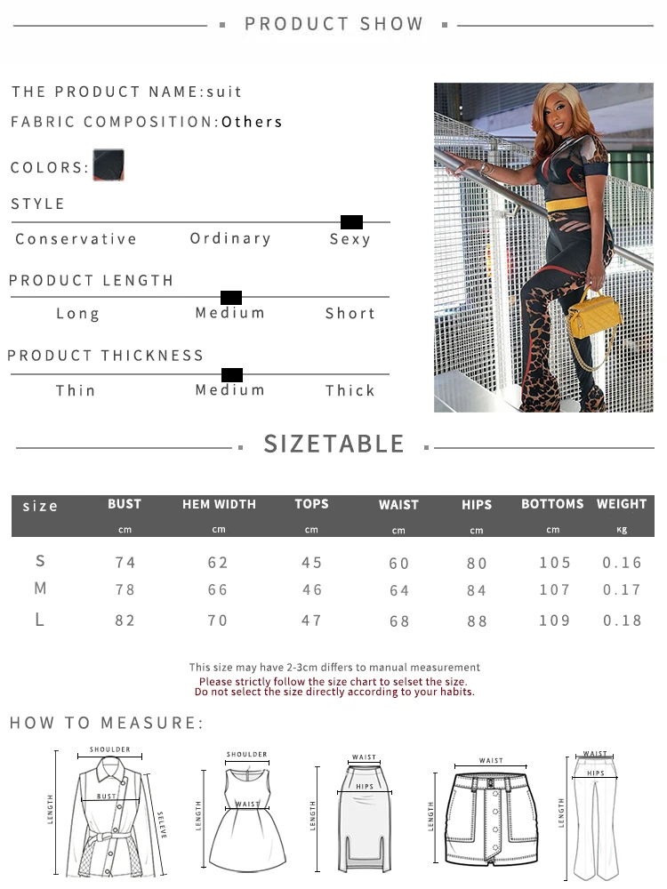 Skinny Women 2 Piece Set See Through Leopard Print Sexy Shorts Sleeve Crop Tops+Flare Pants Matching Clubwear Outfits