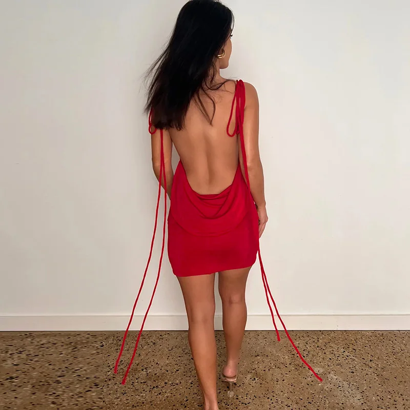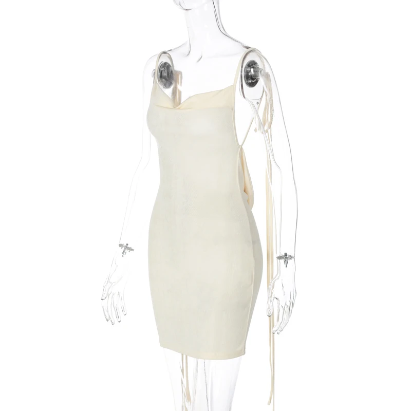 Sleeveless Swinging Collar Backless Slips Bandage Mini Prom Dress Summer Women Elegant Outfit Party Vacation Beach Y2K
