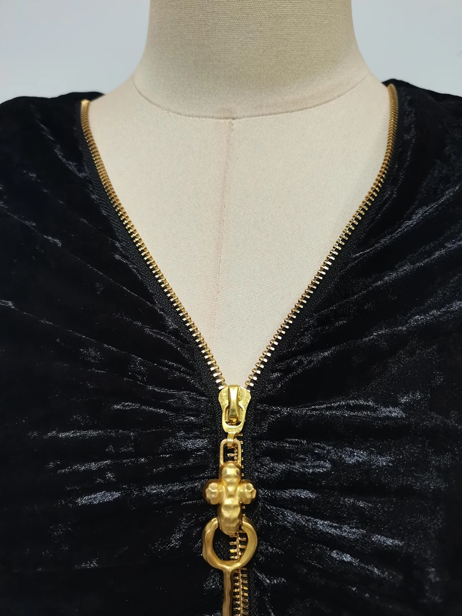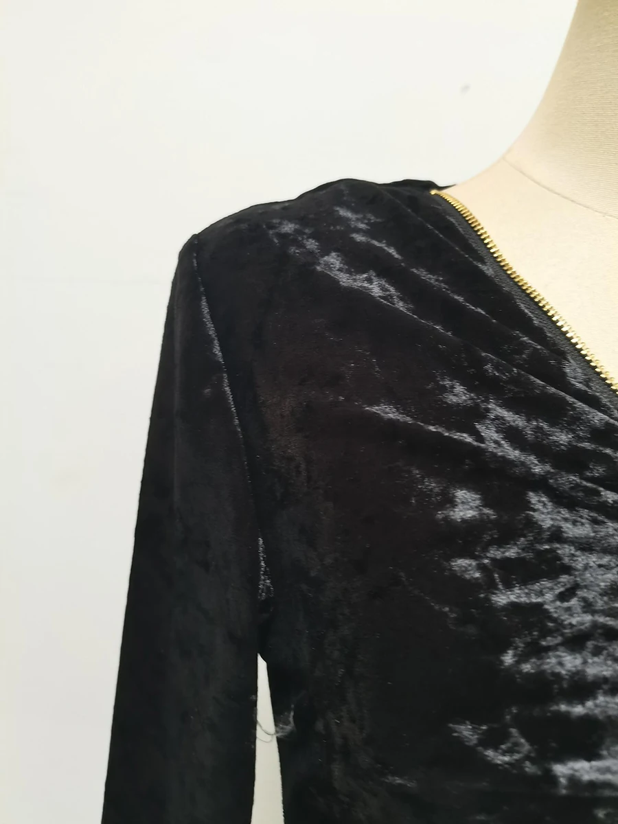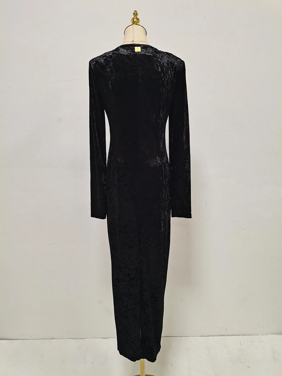 Slimming Spliced Folds Temperament Dresses for Women V Neck Long Sleeves Patchwork Zipper Fashion Dress Female New
