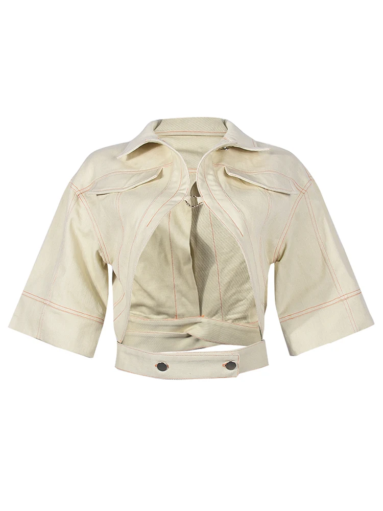 Small Personality Woman Jacker Button Metal Ring Autumn Cardigan Outdoor Street Fashion Half-Sleeved Lapel Short Coat