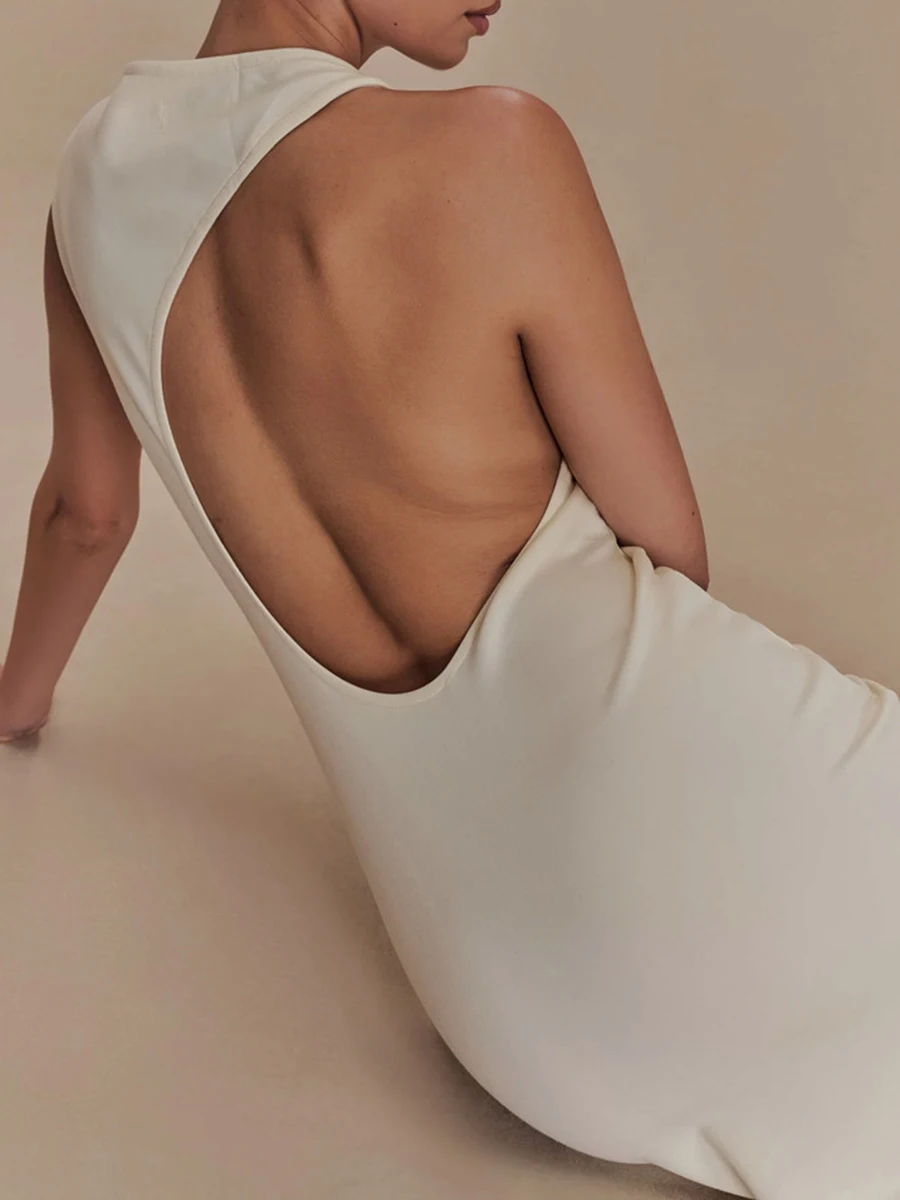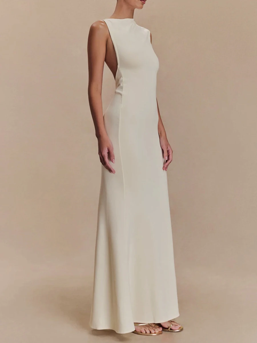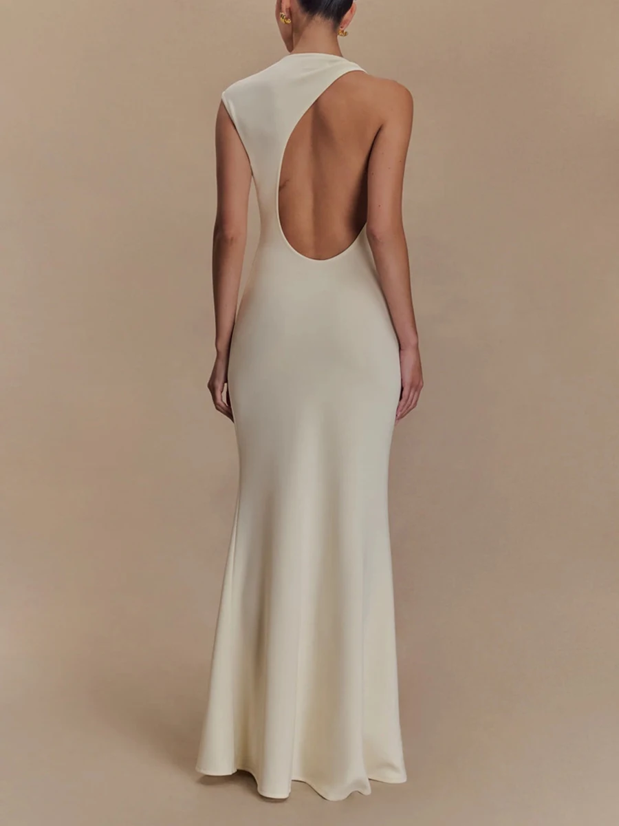 Solid Irregular Minimalist Slimming Dresses For Women O Neck Sleeve High Waist Temperament Long Dress Female New