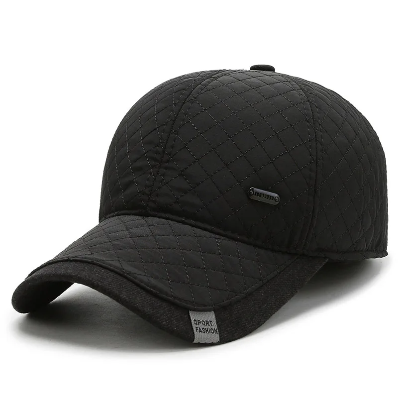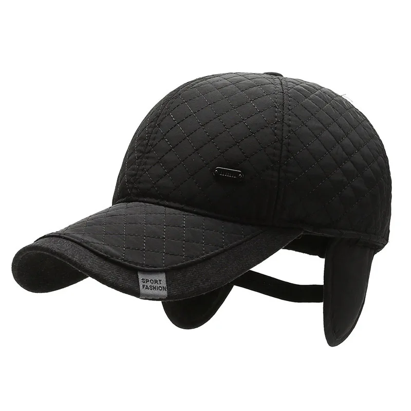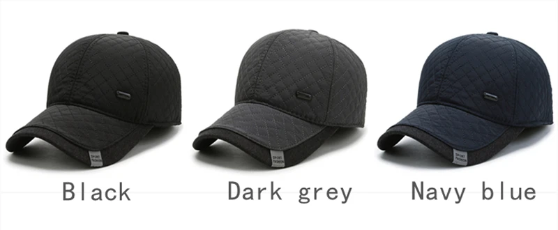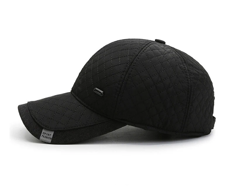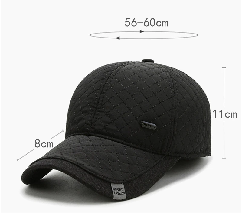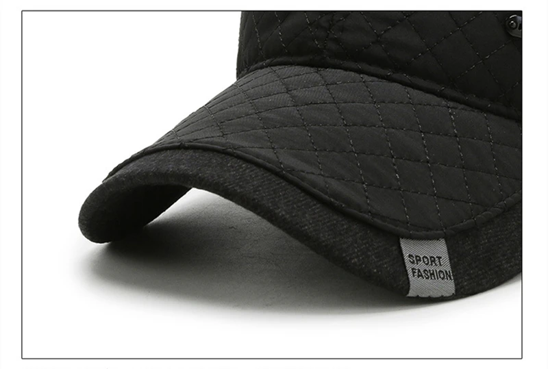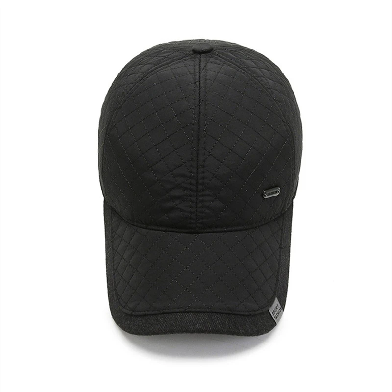 Solid Men's Winter Cap with Earflaps Keep Warm Cotton Baseball Cap Male Outdoor Velvet Thicken Fitted Cap Snapback Hat
