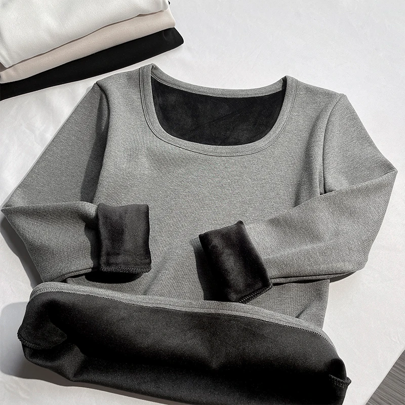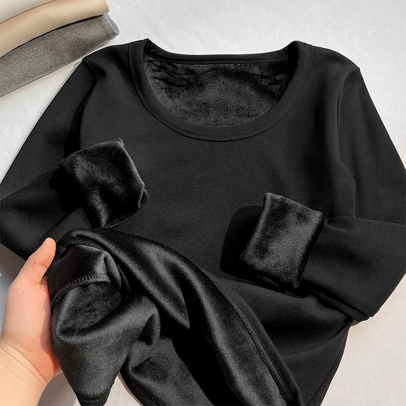 Load image into Gallery viewer, Solid O Neck Long Sleeve Shirt Women Autumn Winter Bottoming Tops Casual Slim Basic Velvet T-shirt 2024 Simplicity Popular Trend