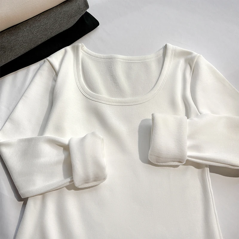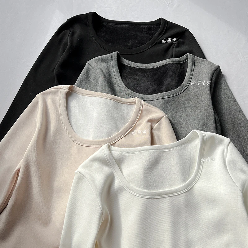 Solid O Neck Long Sleeve Shirt Women Autumn Winter Bottoming Tops Casual Slim Basic Velvet T-shirt 2024 Simplicity Popular Trend