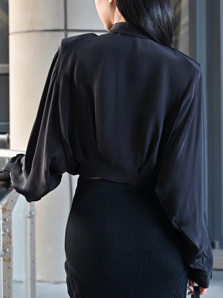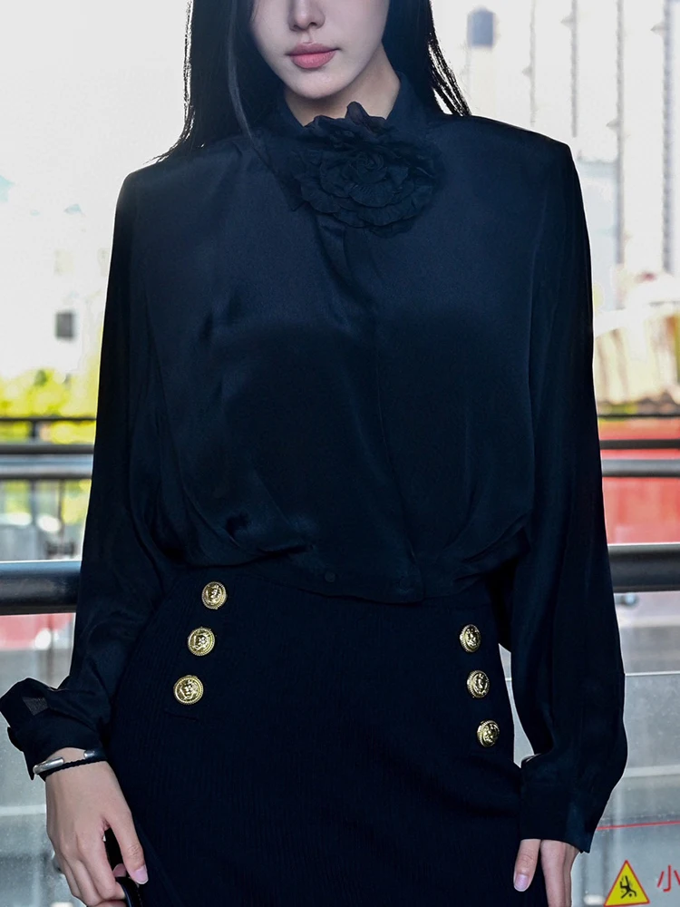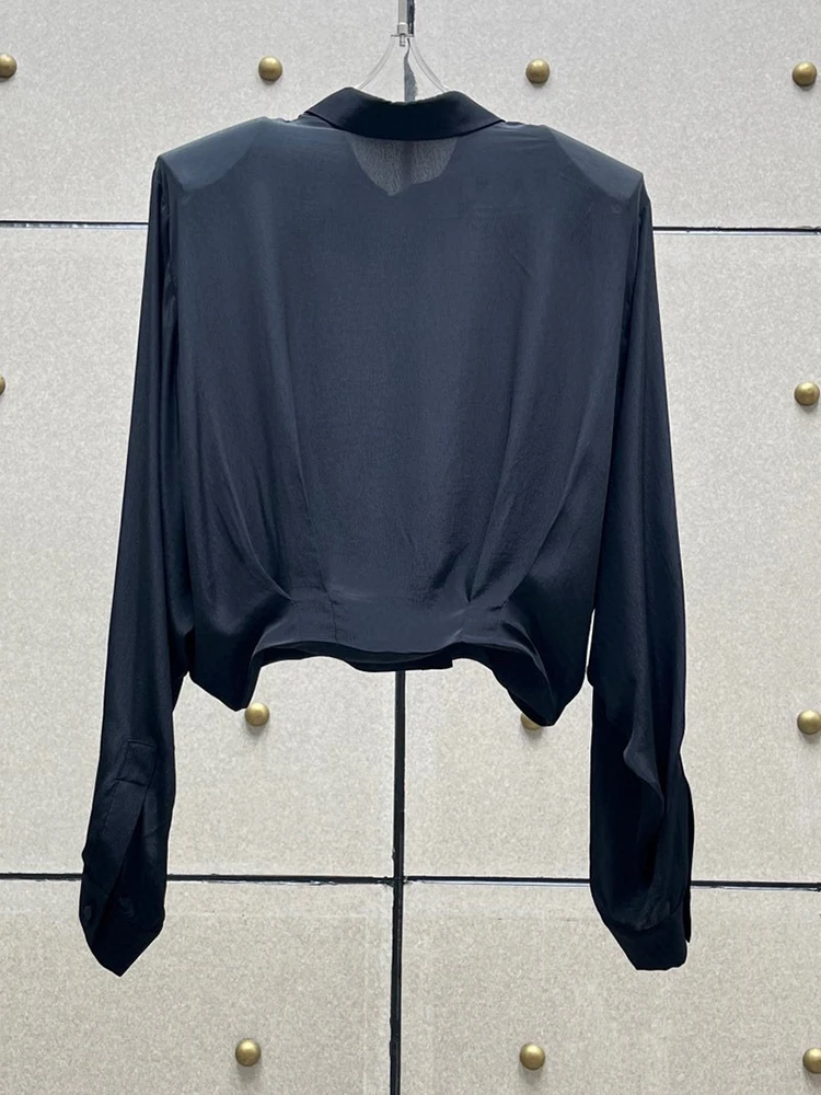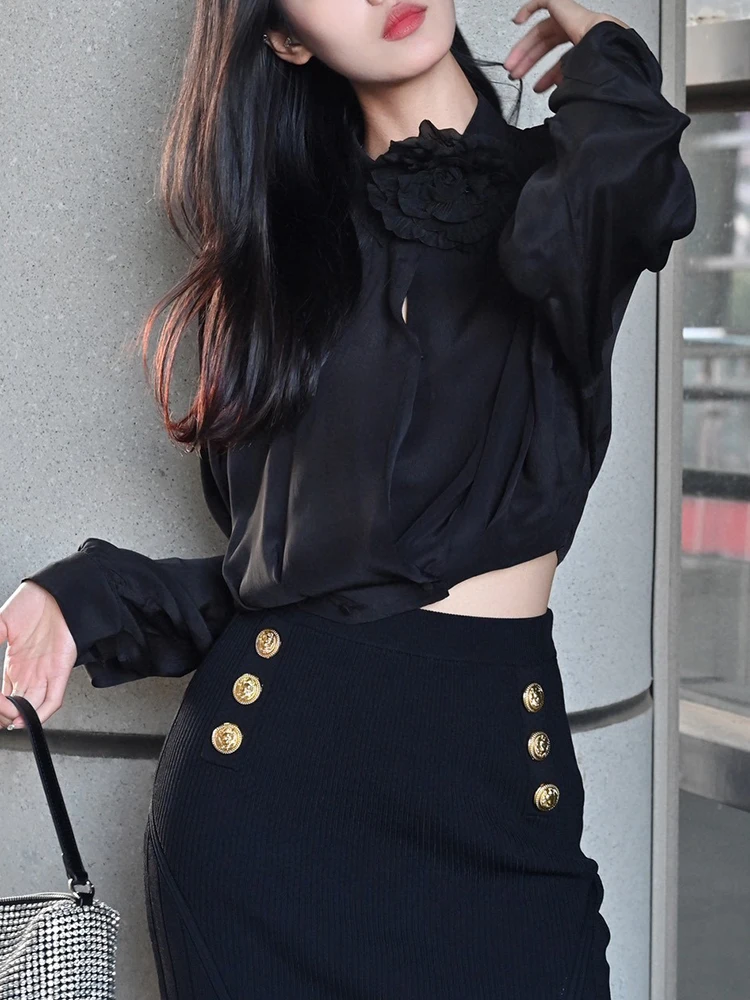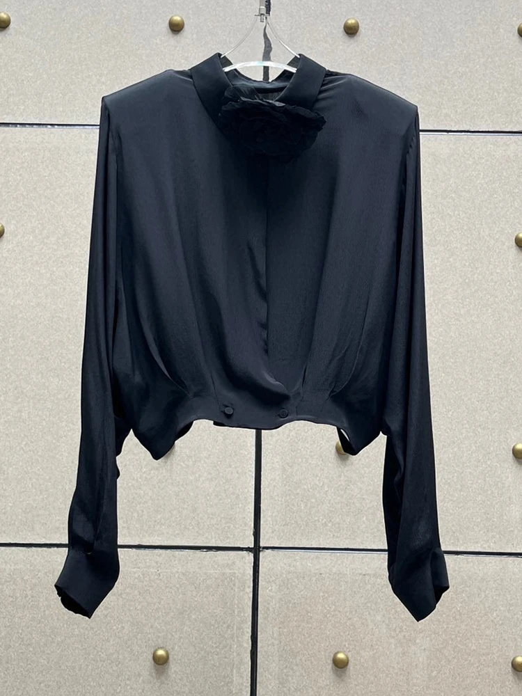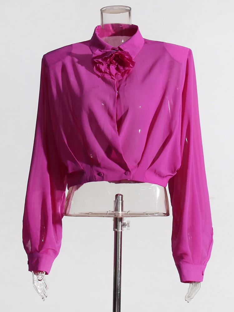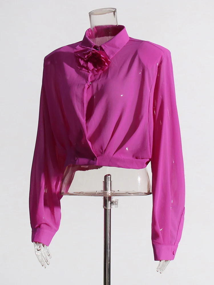 Solid Patchwork Appliques Casual Shirts For Women Lapel Long Sleeves Temperament Blouses Female Fashion Clothing