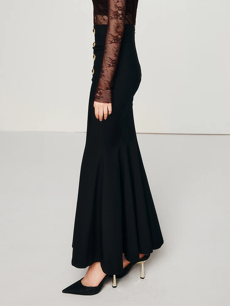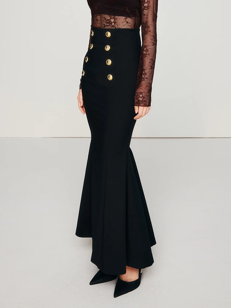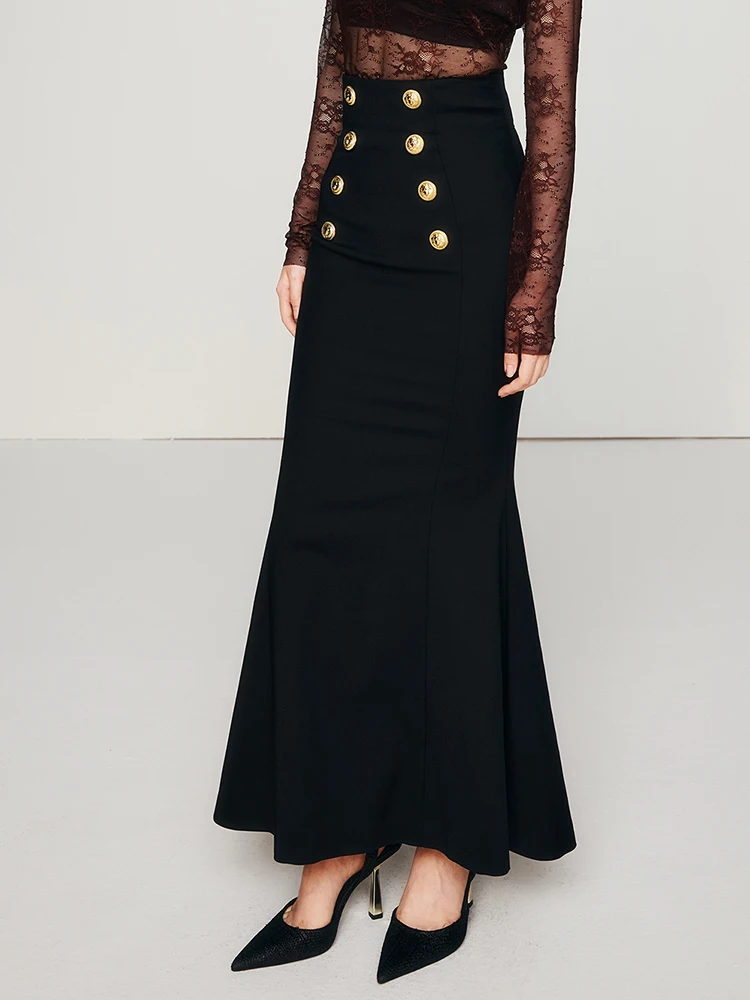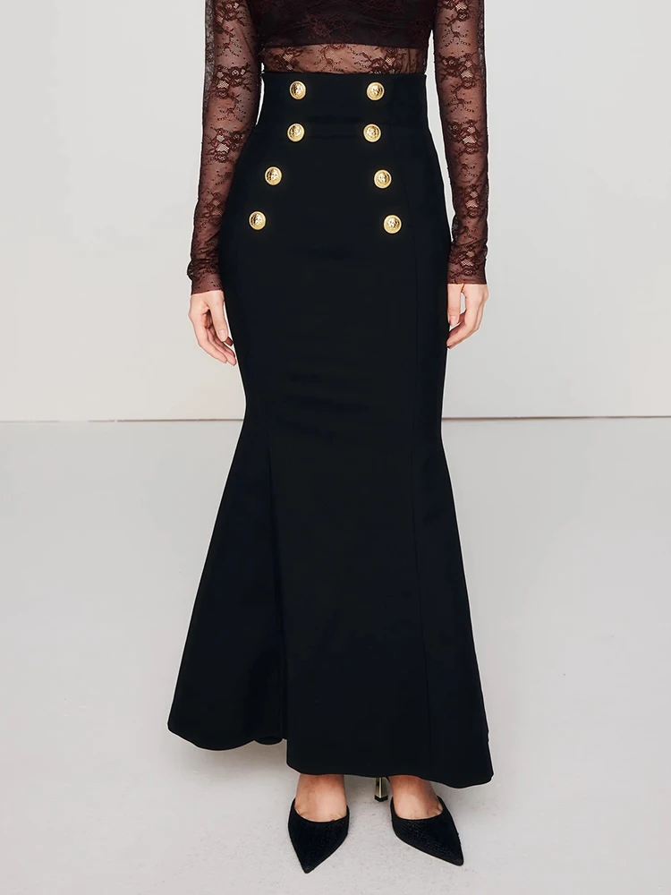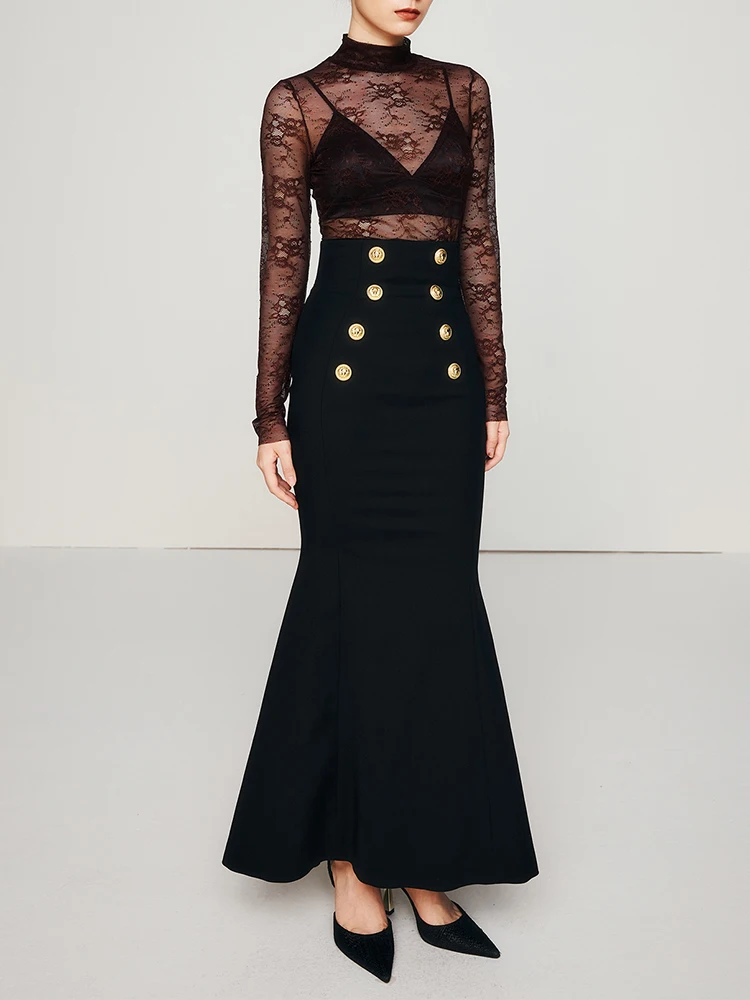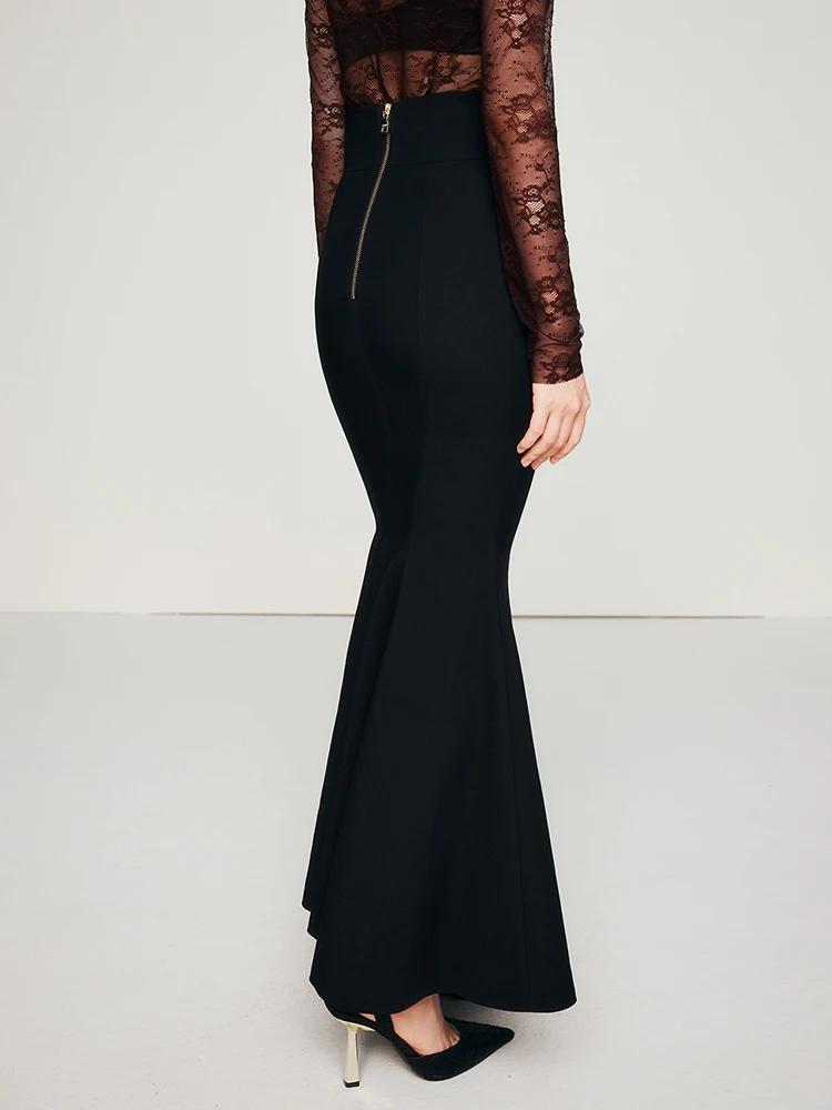 Solid Patchwork Metal Buckle Slimming Bodycon Skirts For Women High Waist Temperament Sexy Skirt Female Fashion