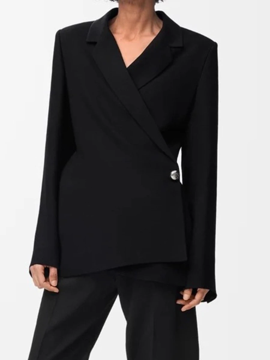Solid Slimming Minimalist Jackets for Women Lapel Long Sleeves Tunic Temperament Jacket Female Fashion Clothing New