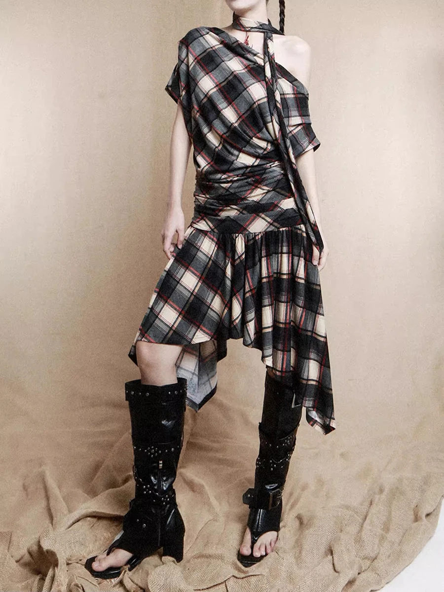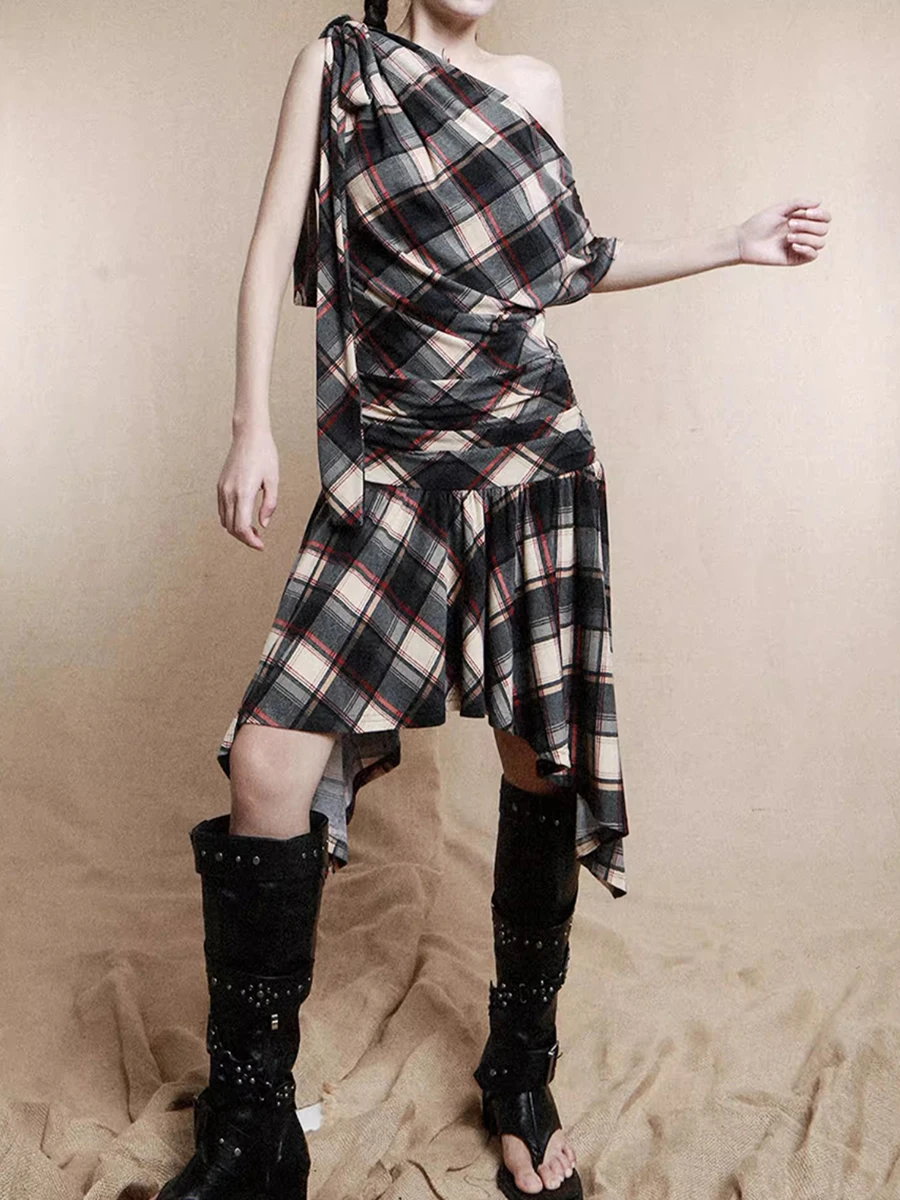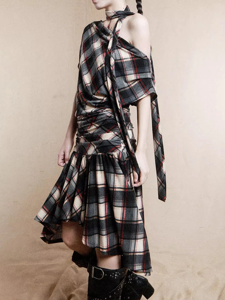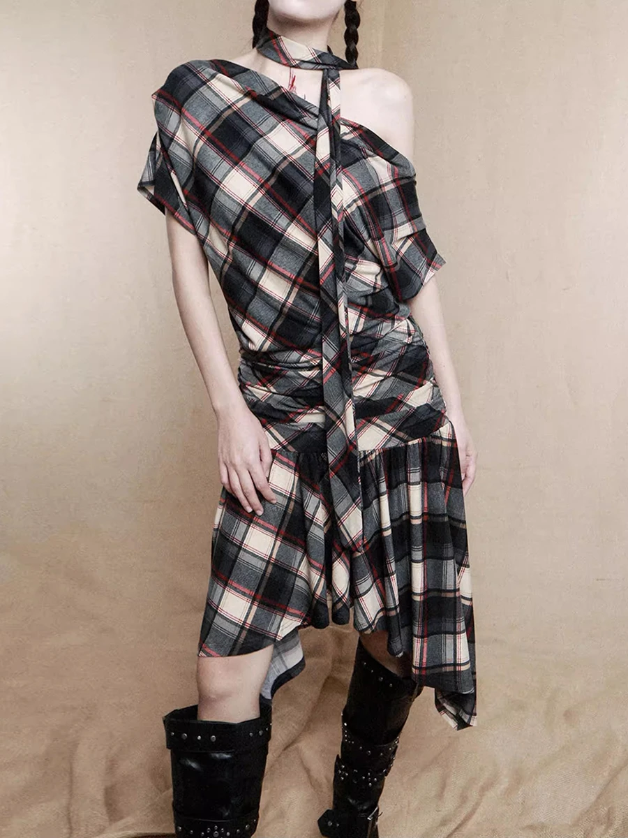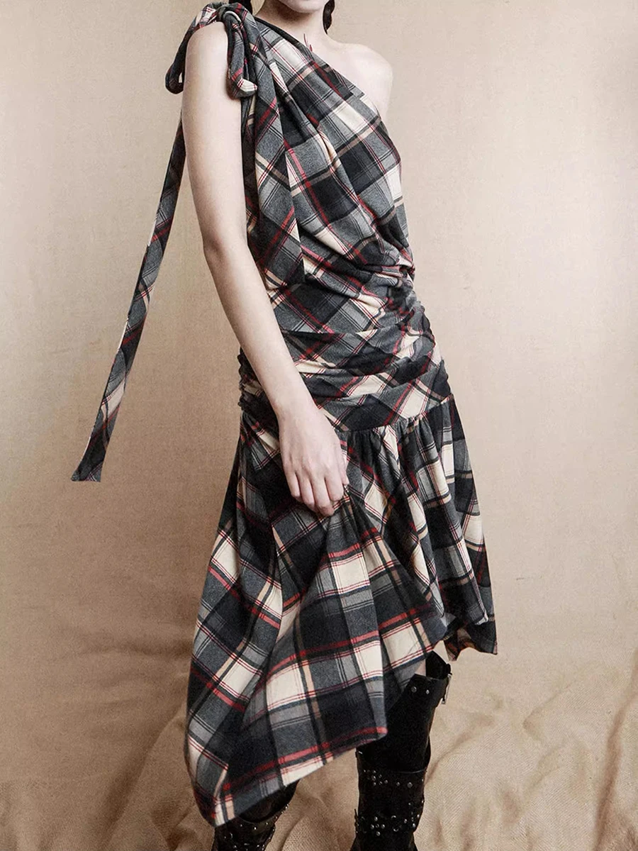 Solid Slimming Temperament Dresses For Women Diagonal Collar Sleeveless High Waist Temperament Dress Female Fashion