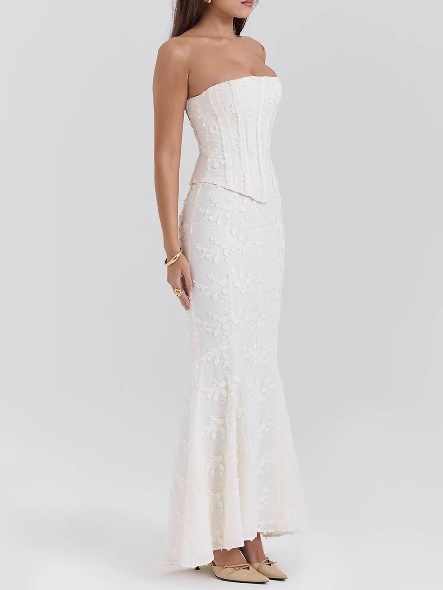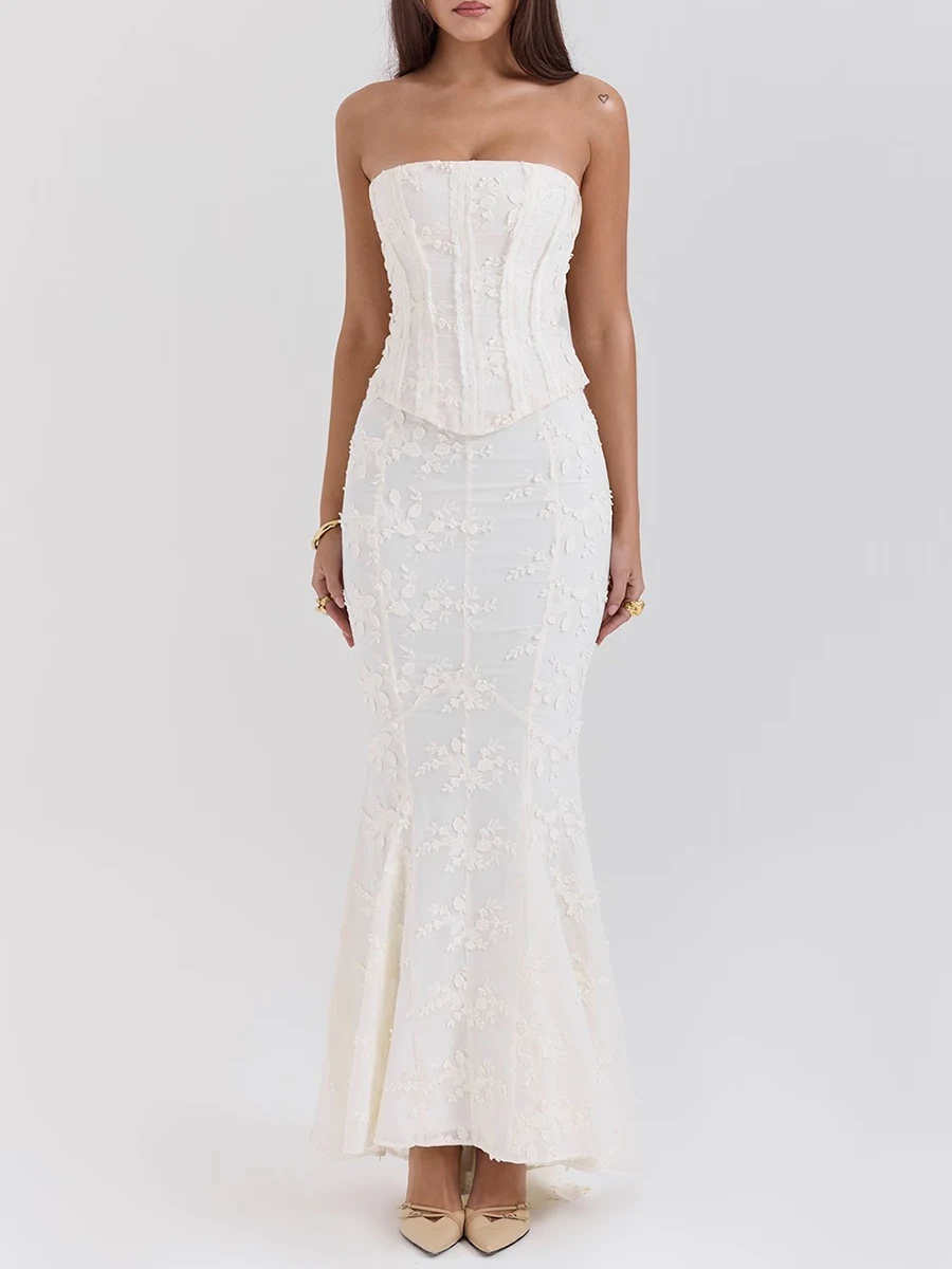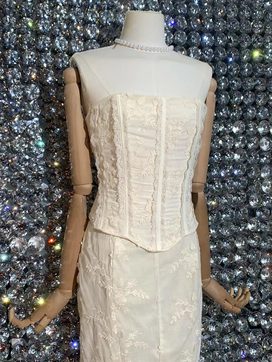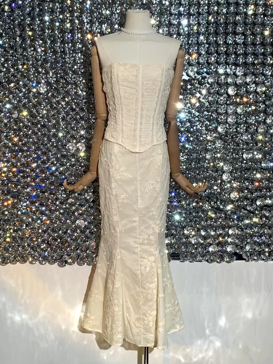 Solid Slimming Two Piece Set For Women Strapless Sleeveless Top High Waist Slimming Skirt Chic Strs Female Fashion