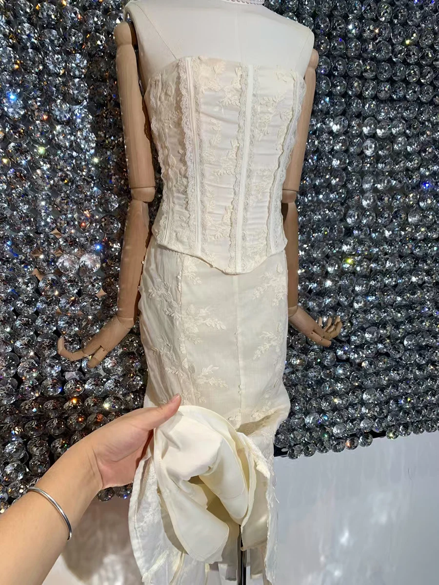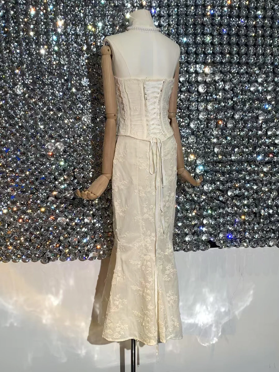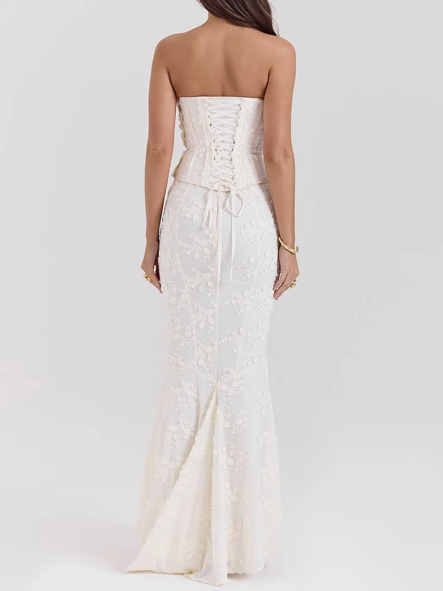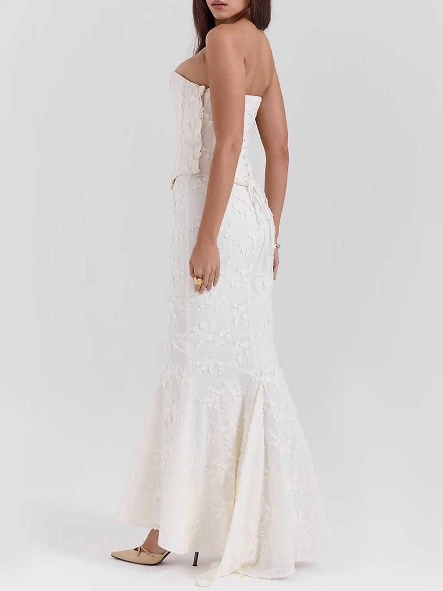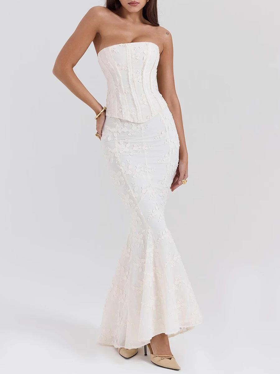 Solid Slimming Two Piece Set For Women Strapless Sleeveless Top High Waist Slimming Skirt Chic Strs Female Fashion
