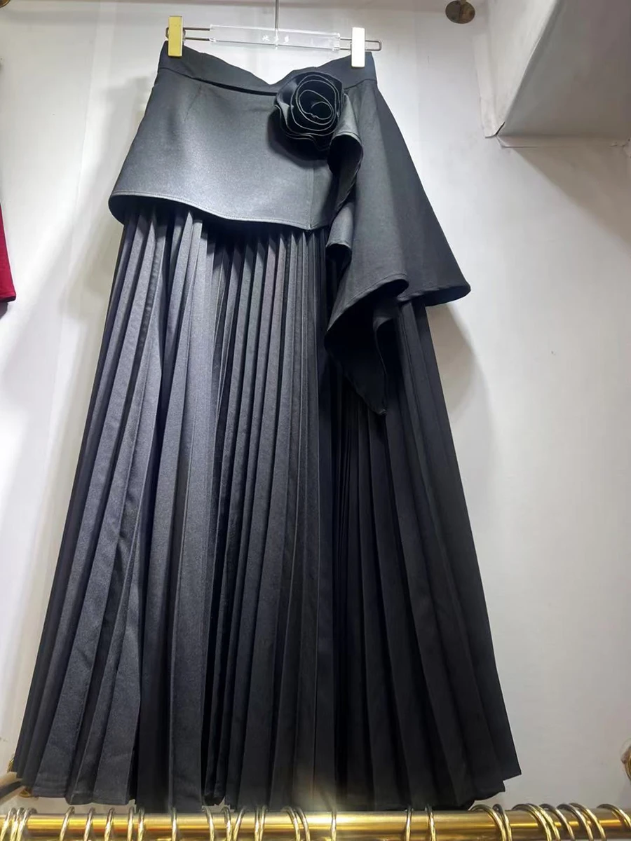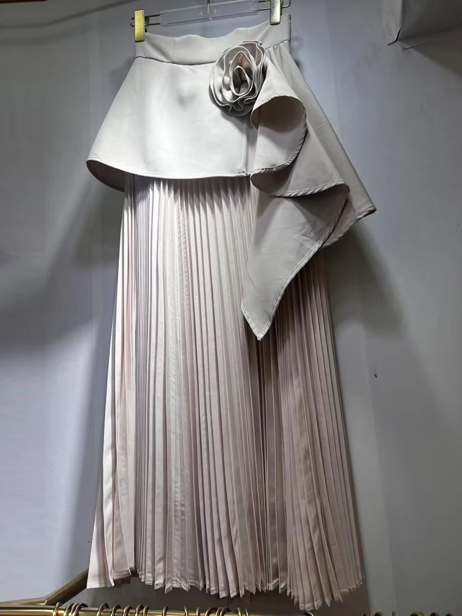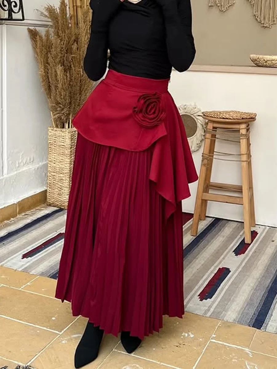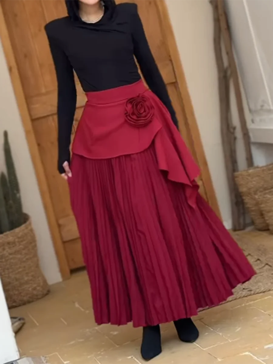 Solid Spliced Appliques Loose Skirts For Women High Waist Temperament Minimalisr Skirts Female Fashion Style New