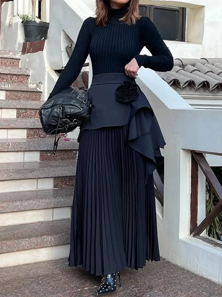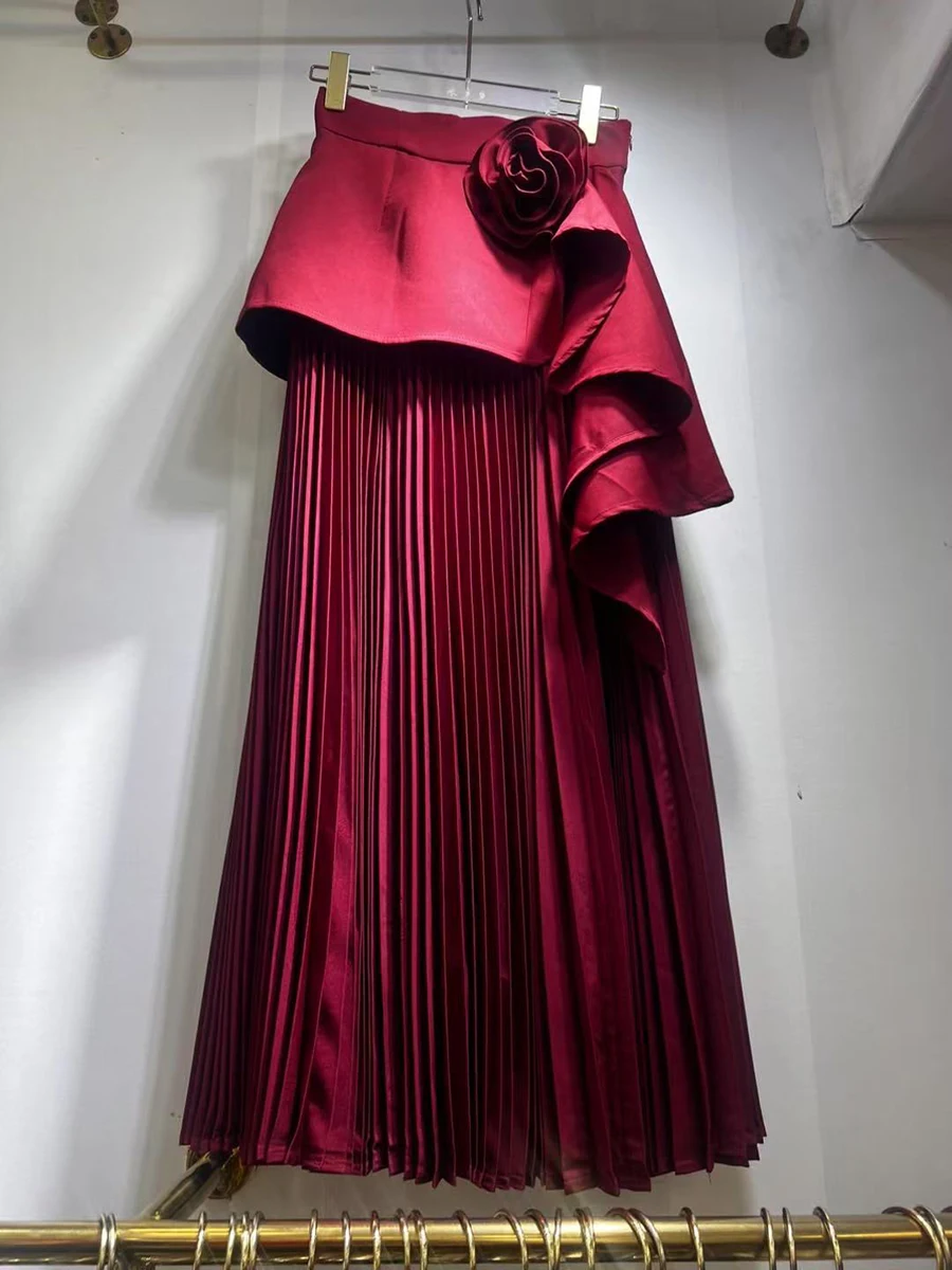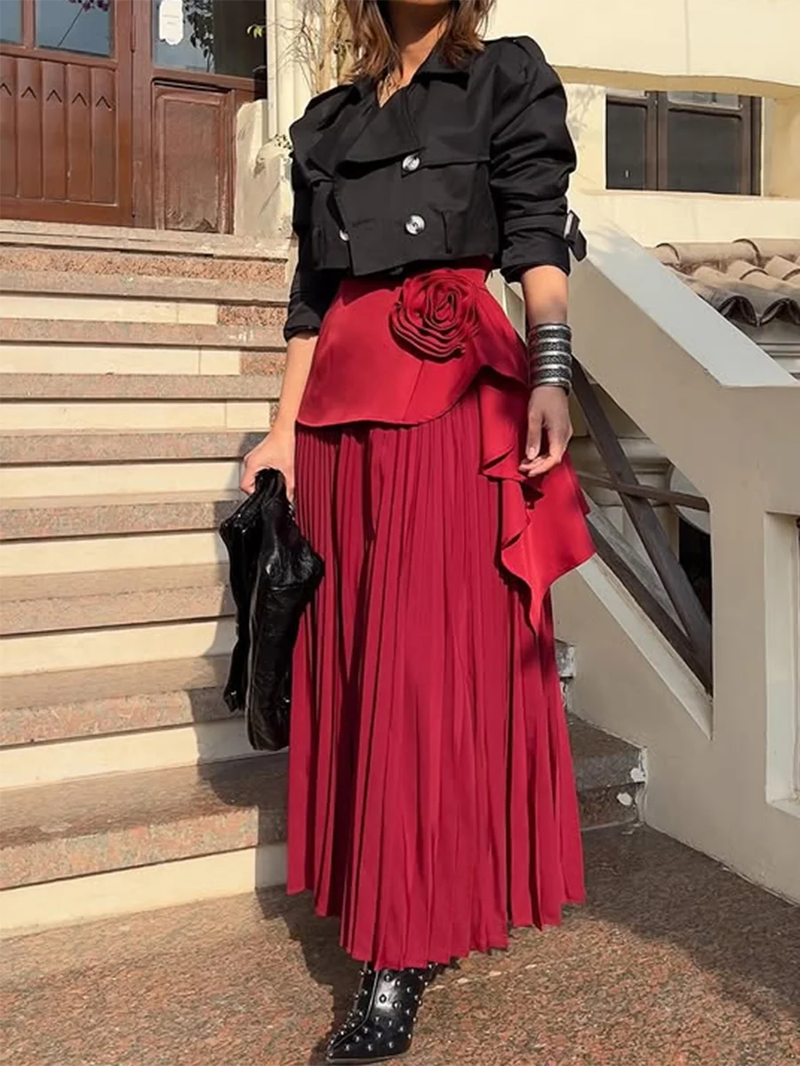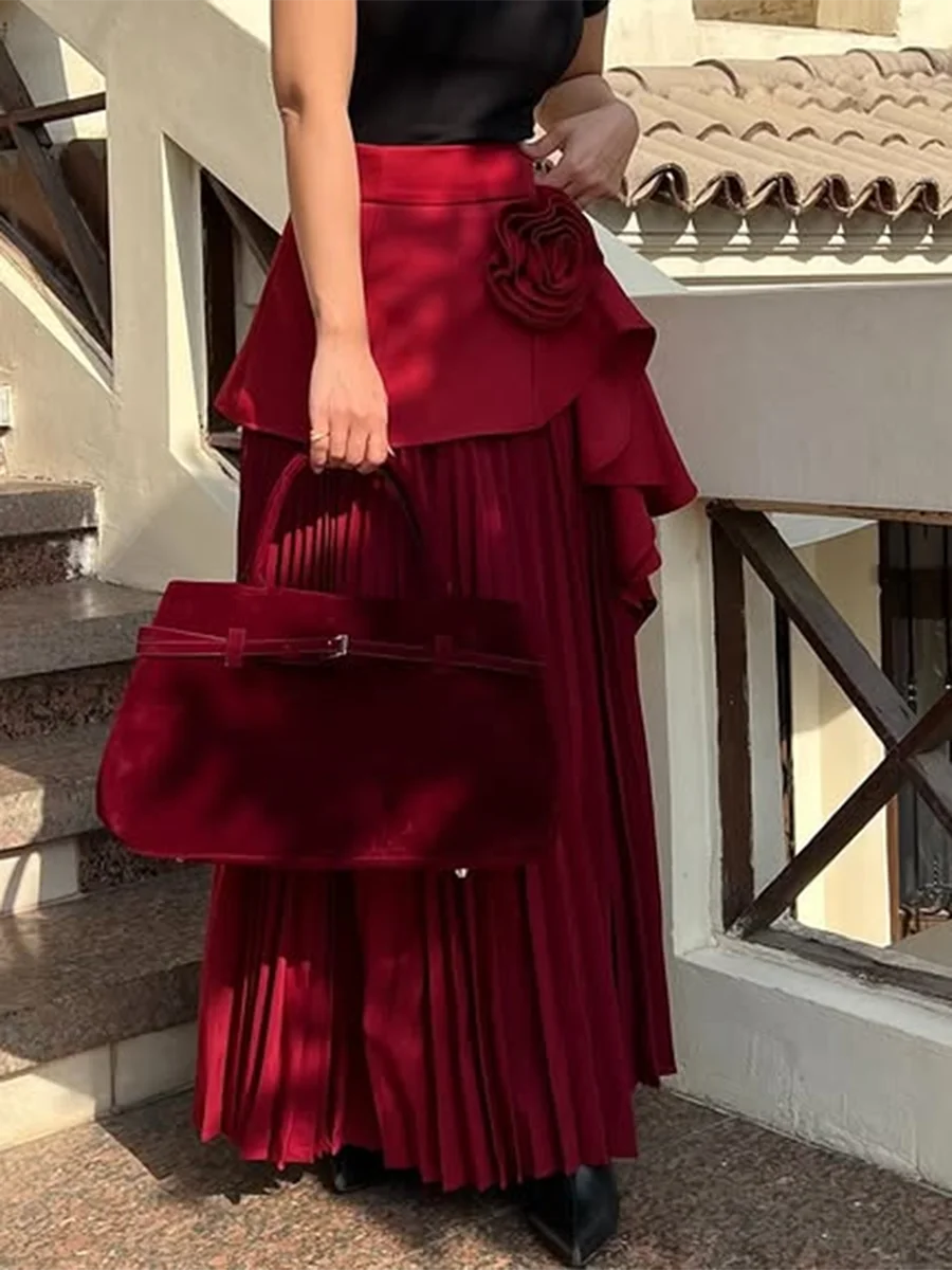 Solid Spliced Appliques Loose Skirts For Women High Waist Temperament Minimalisr Skirts Female Fashion Style New
