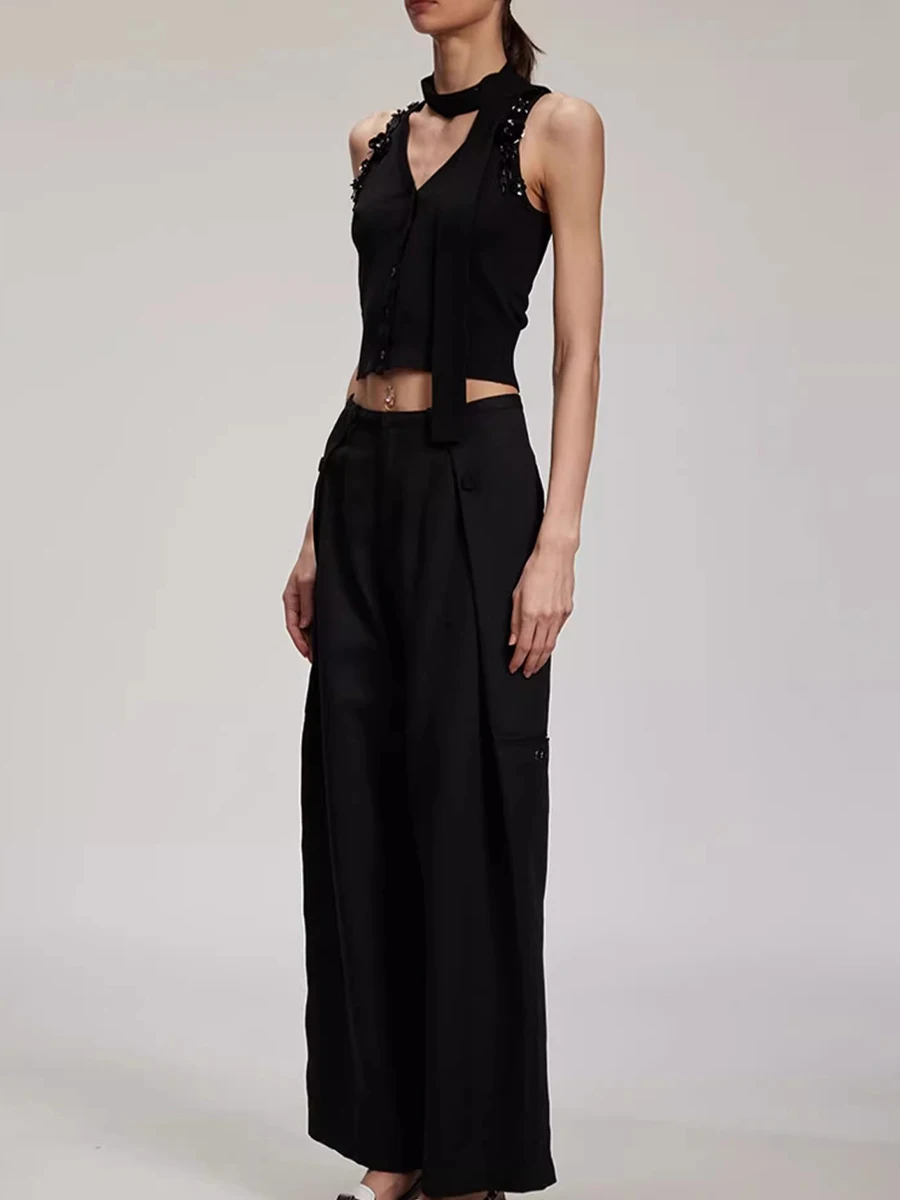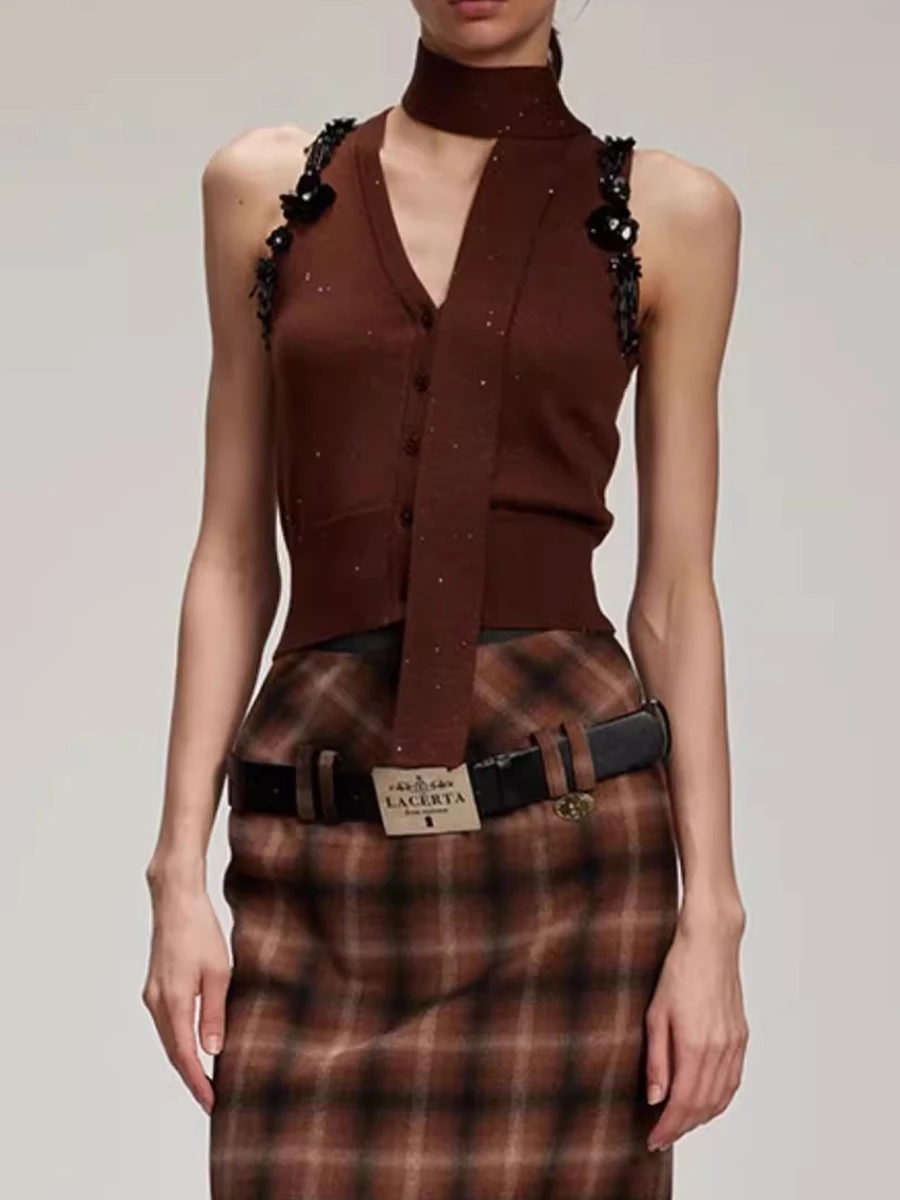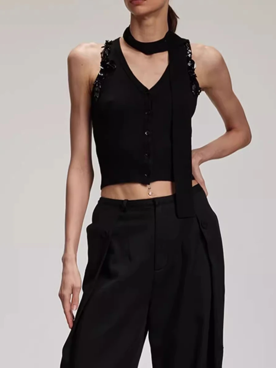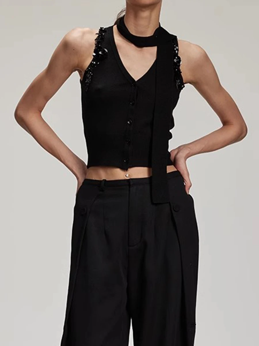 Solid Spliced Button Slimming Vests For Women V Neck Sleeveless Temperament Short Vest Female Fashion Style Clothes