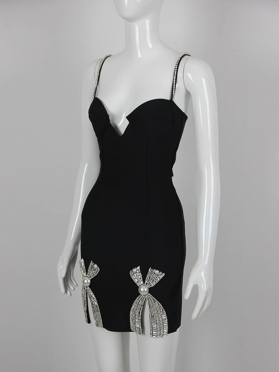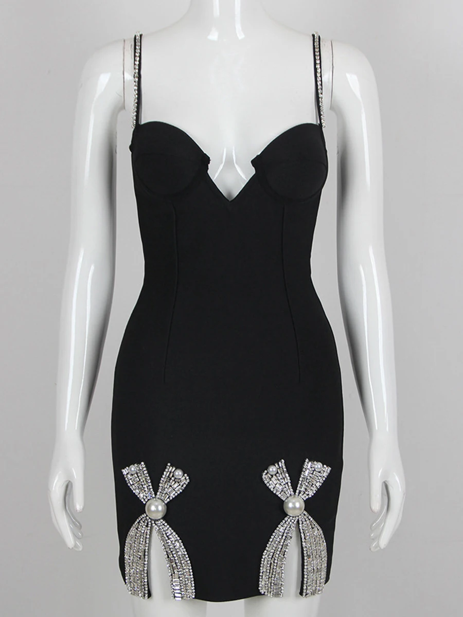 Solid Spliced Diamonds Chic Dresses For Women V Neck Sleeveless High Waist Temperament Slimming Sexy Dress Female