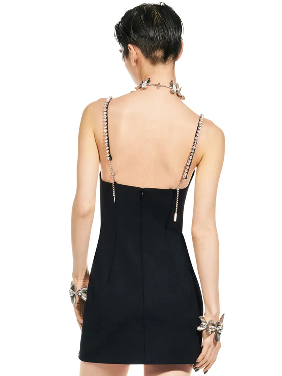 Load image into Gallery viewer, Solid Spliced Diamonds Chic Dresses For Women V Neck Sleeveless High Waist Temperament Slimming Sexy Dress Female