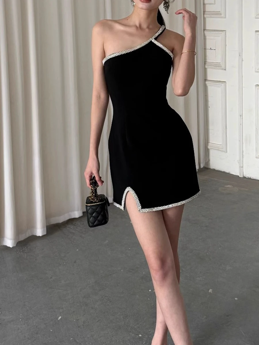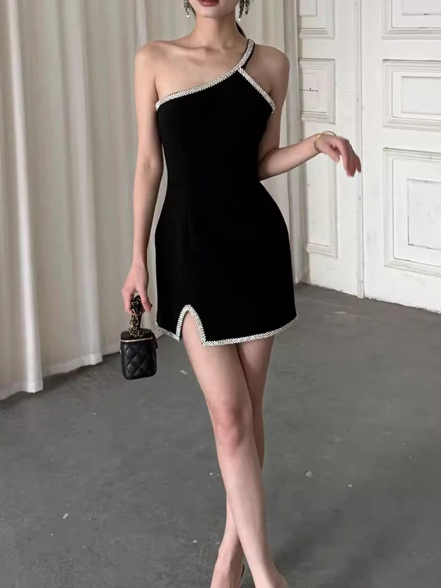 Solid Spliced Diamonds Slimming Mini Dresses For Women Strapless Sleeveless High Waist Temperament Dress Female New