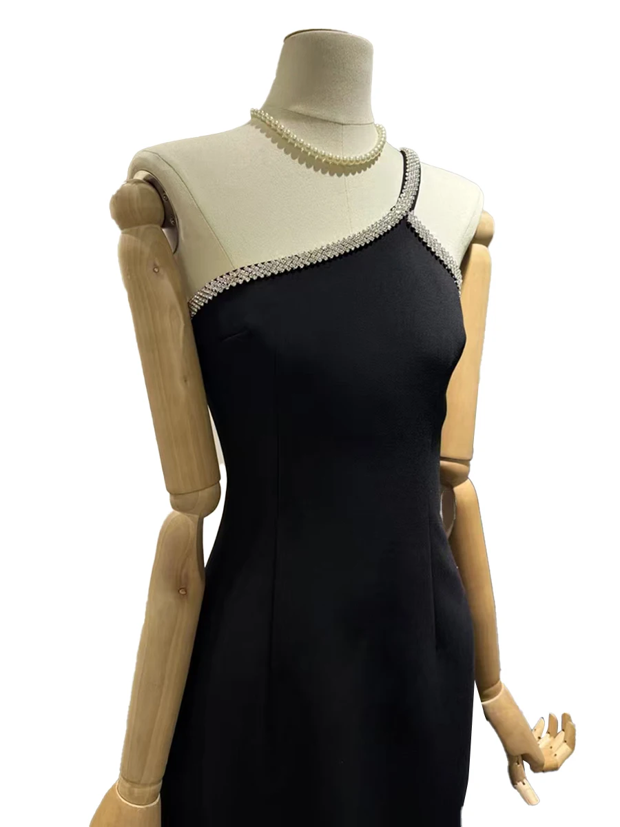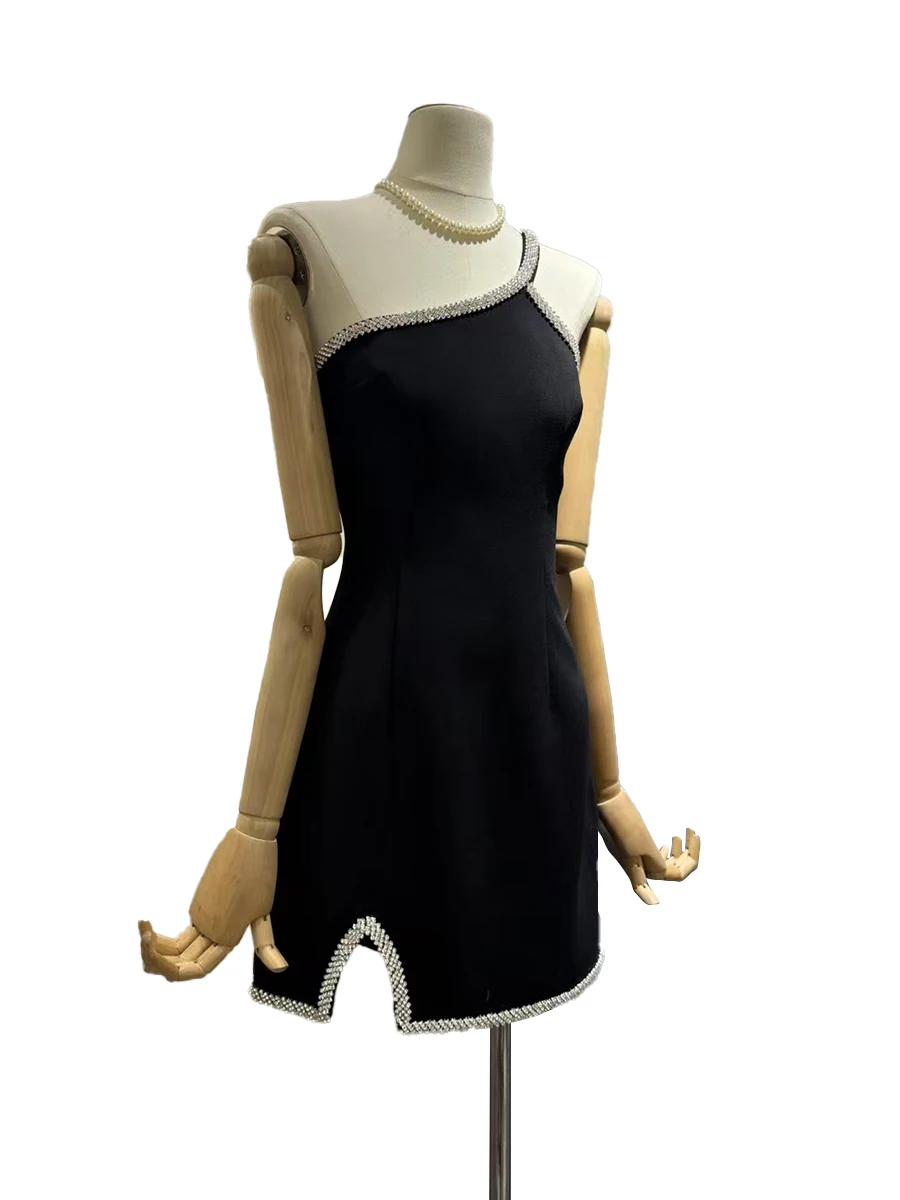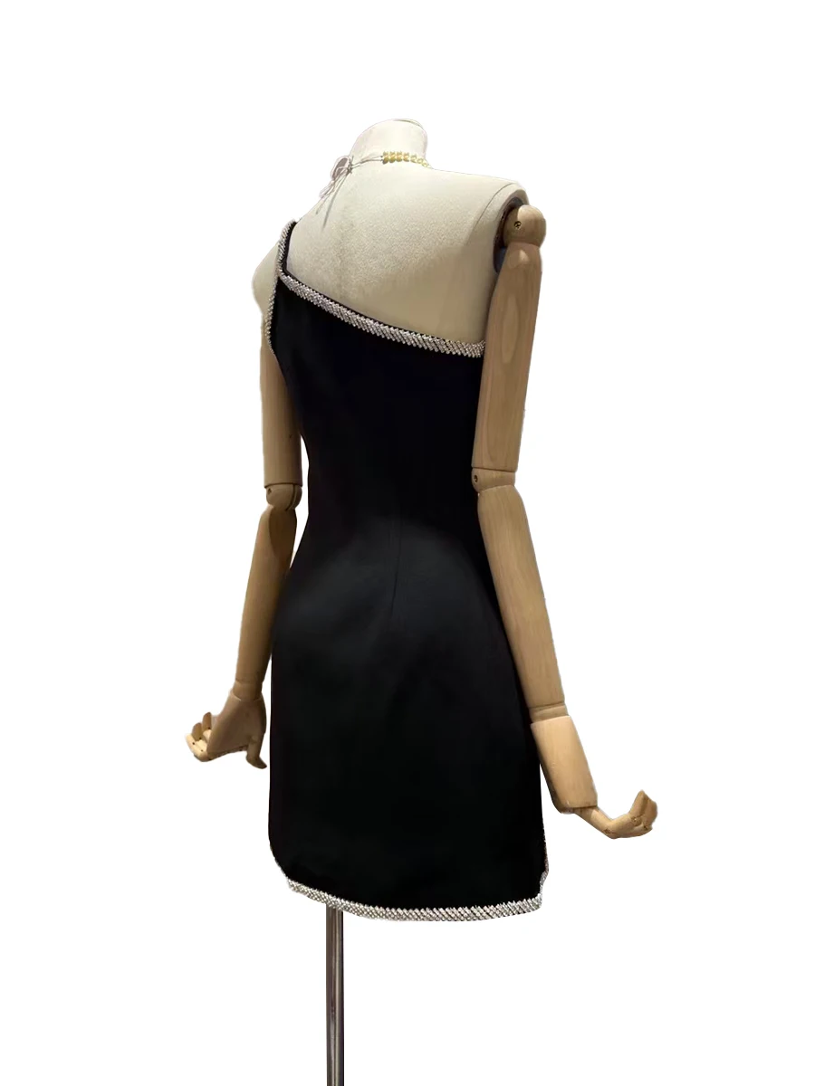 Load image into Gallery viewer, Solid Spliced Diamonds Slimming Mini Dresses For Women Strapless Sleeveless High Waist Temperament Dress Female New