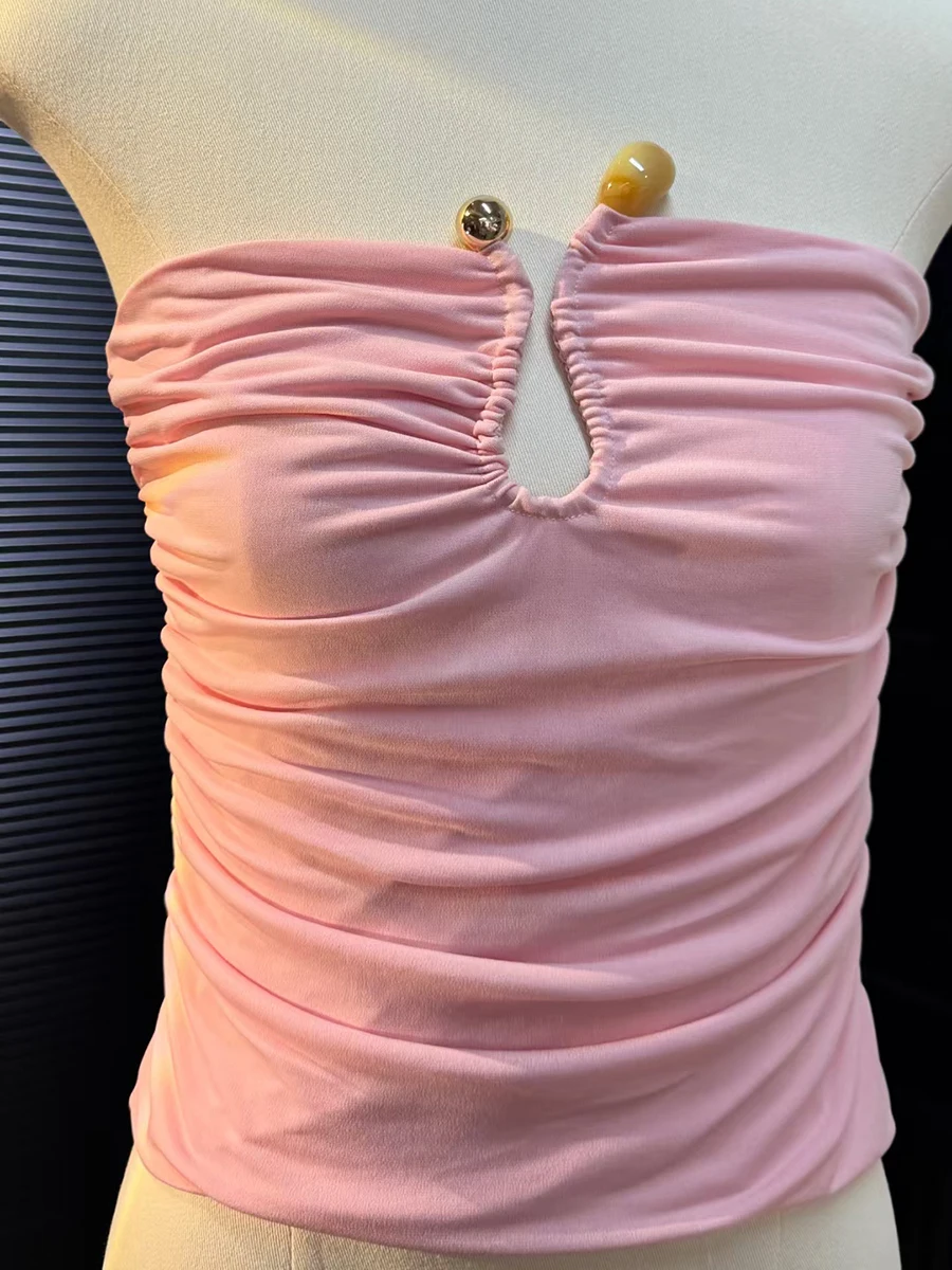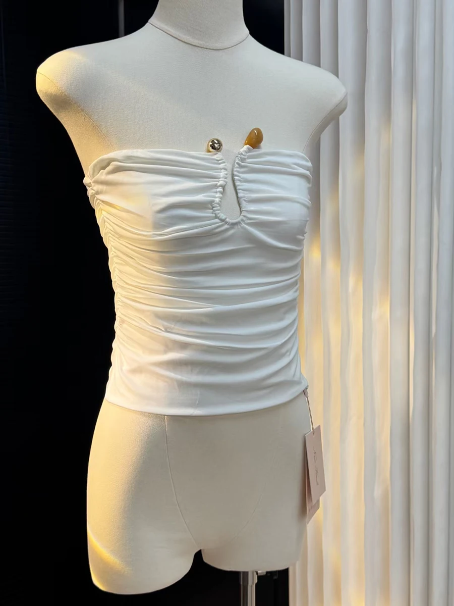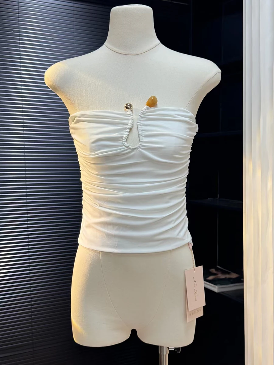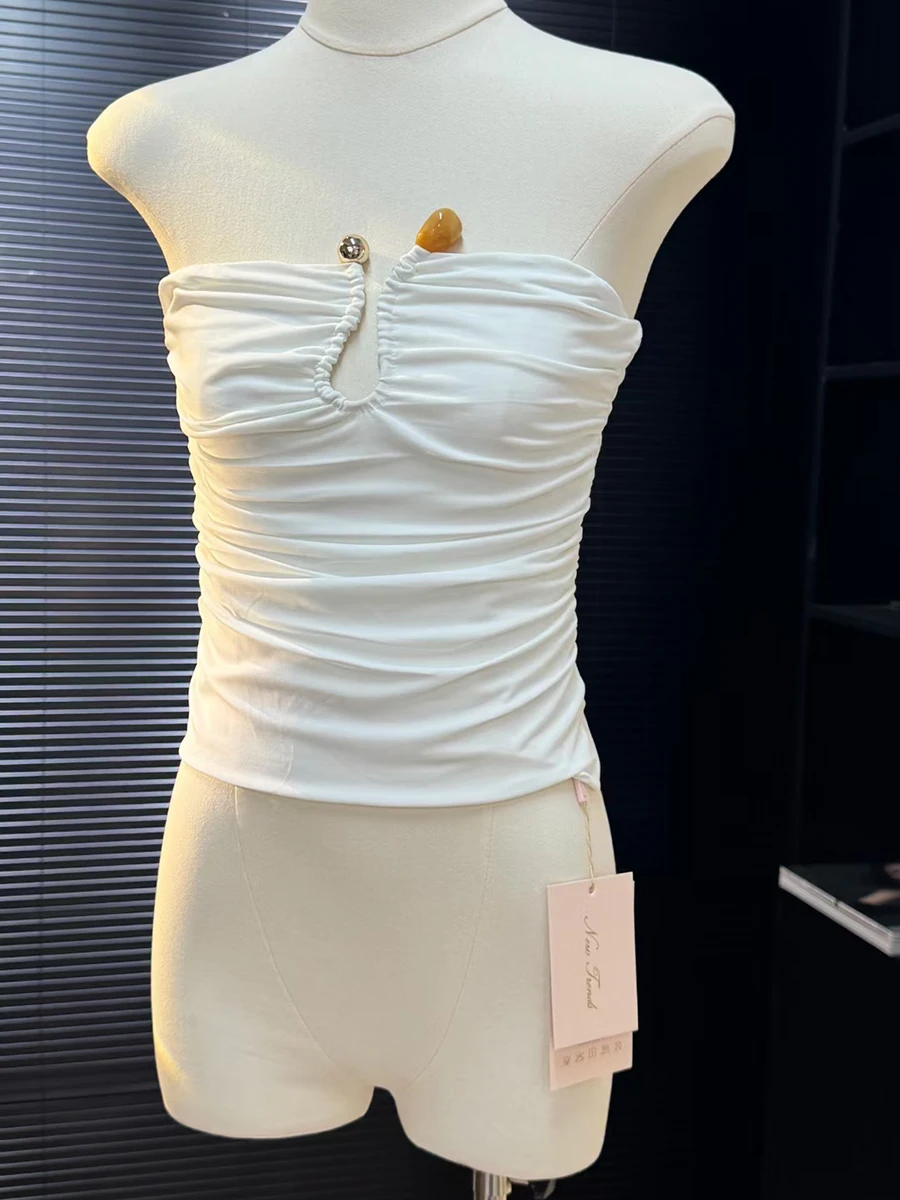 Solid Spliced Folds Slimming Vests For Women Strapless Sleeveless Tunic Temperament Vests Female Fashion Style New