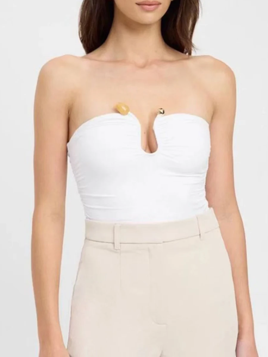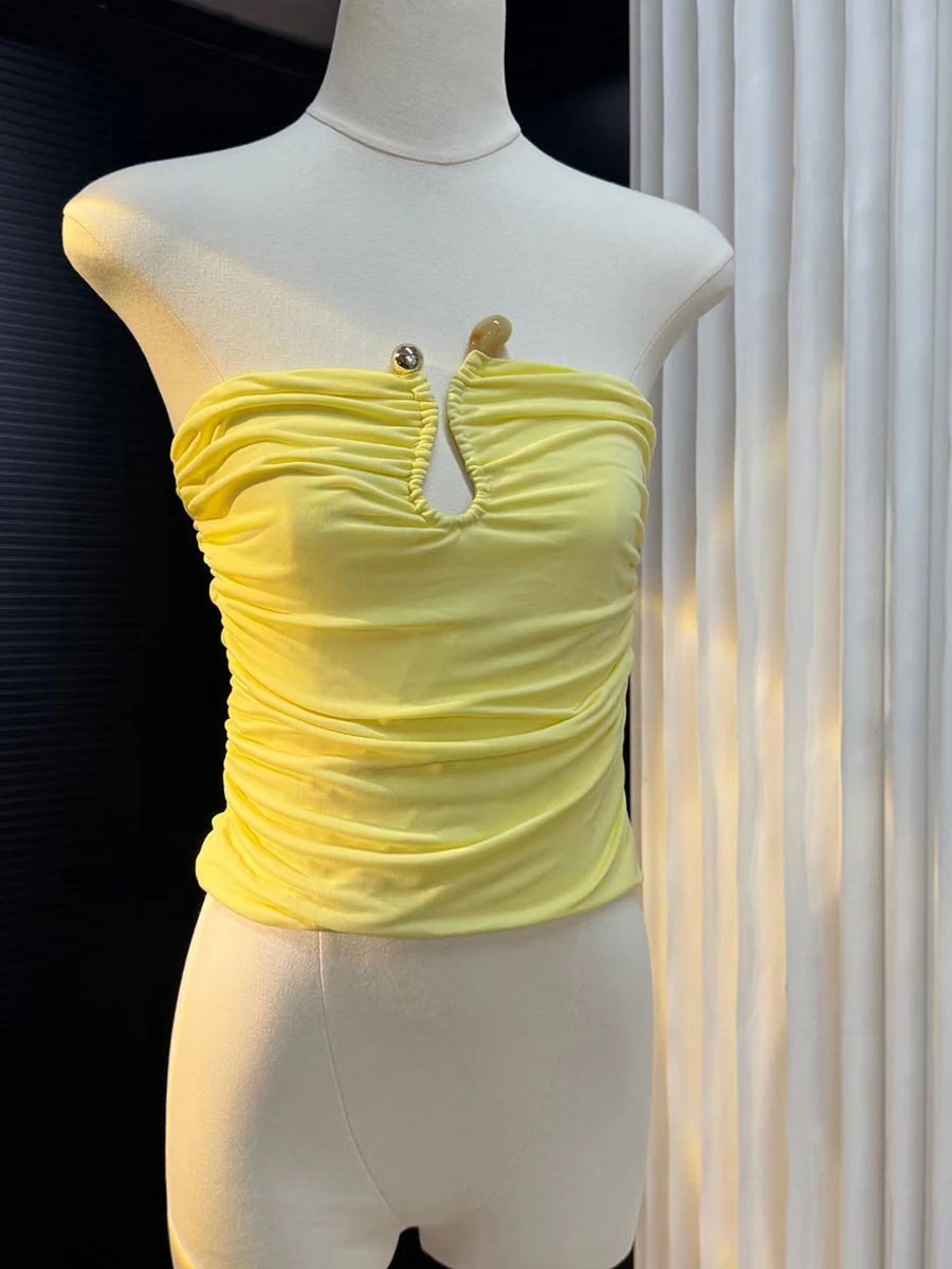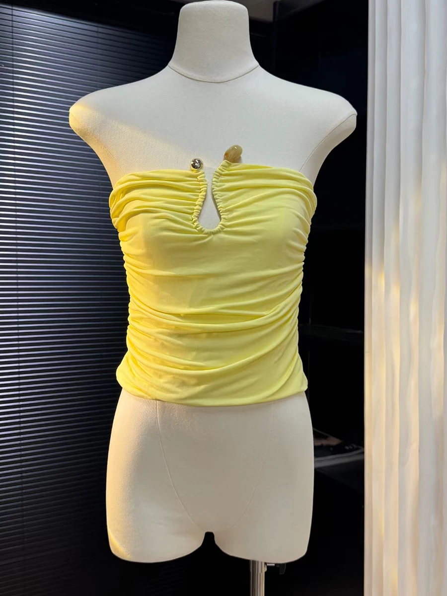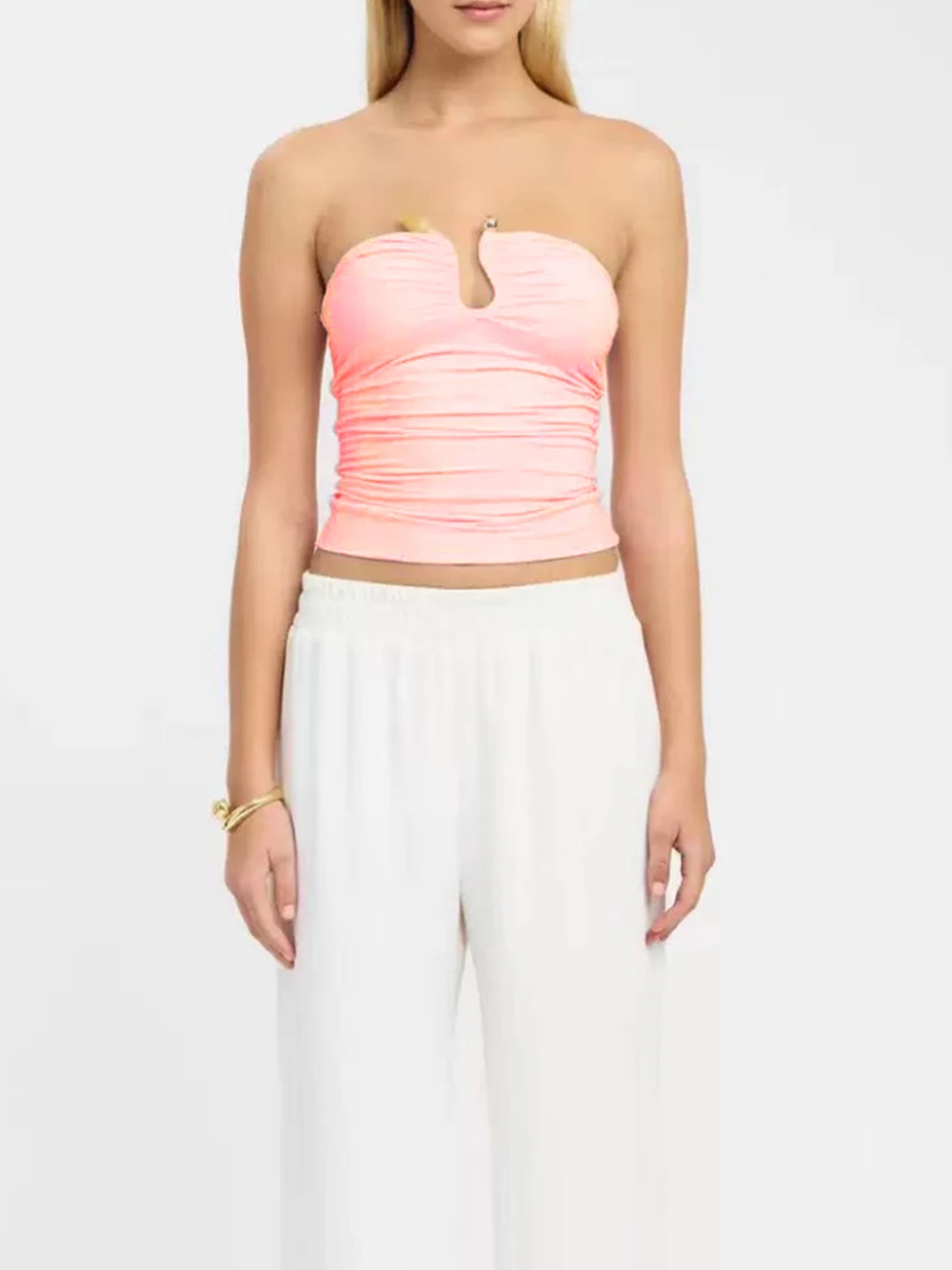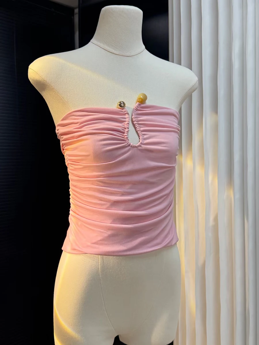 Solid Spliced Folds Slimming Vests For Women Strapless Sleeveless Tunic Temperament Vests Female Fashion Style New