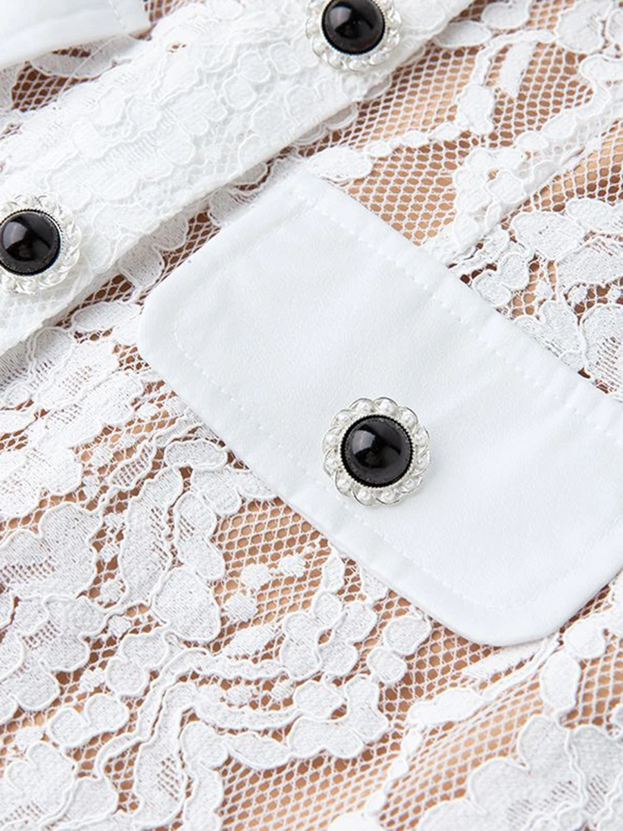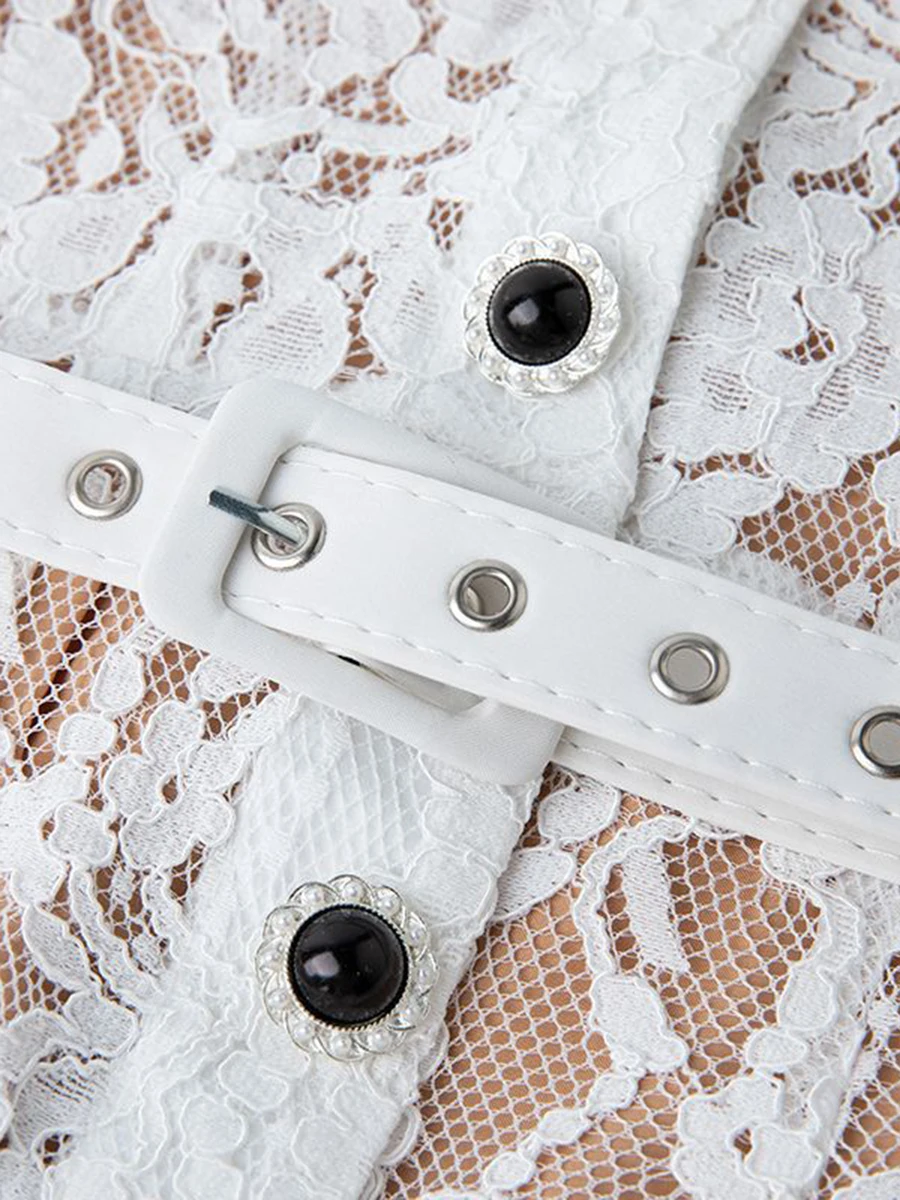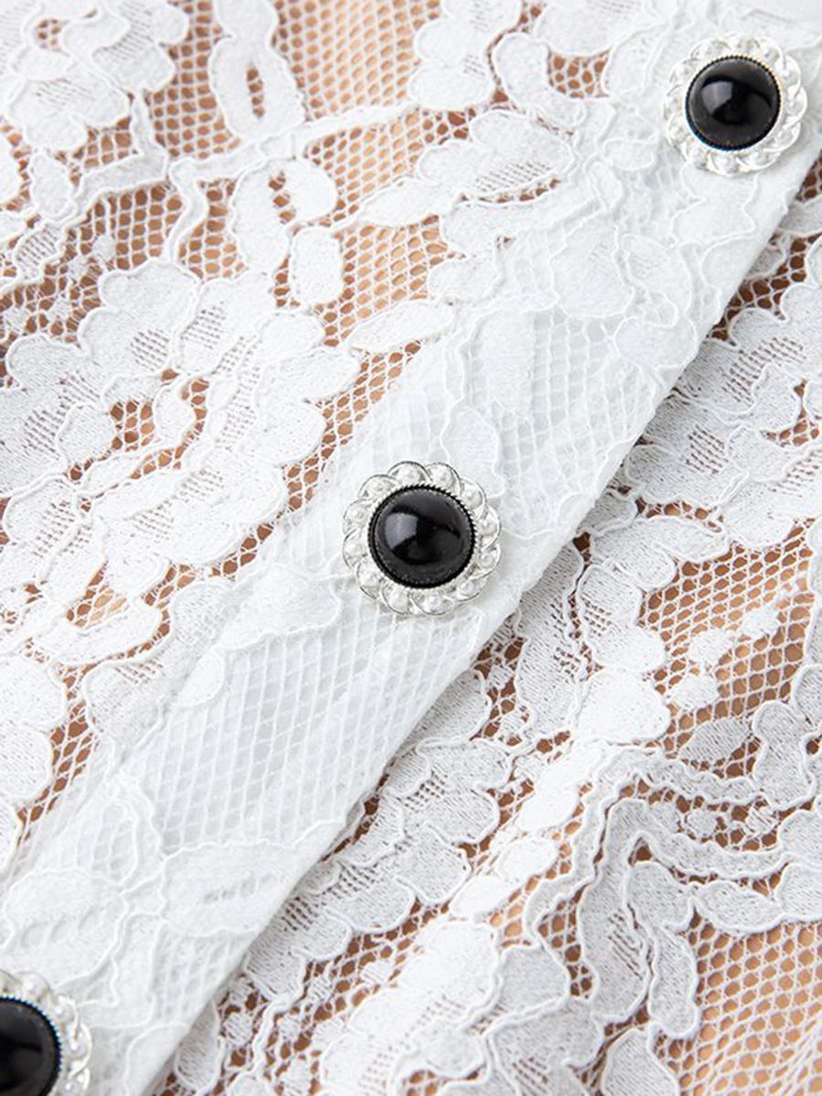 Solid Spliced Lace Slimming Dresses For Women O Neck Short Sleeve High Waist Patchwork Button Dress Female Fashion