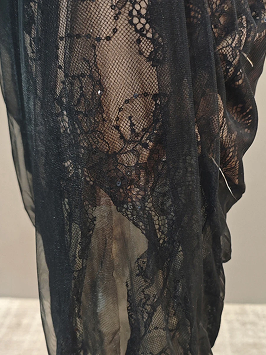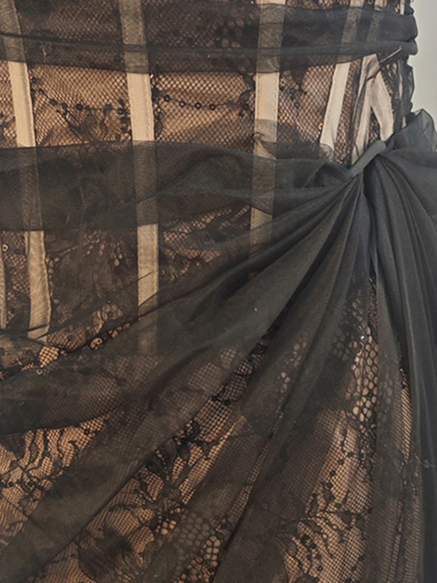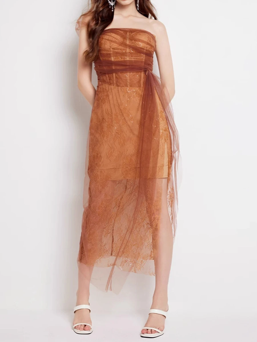Solid Spliced Lace Slimming Dresses For Women Strapless Sleeveless High Waist Temperament Dress Female Fashion New