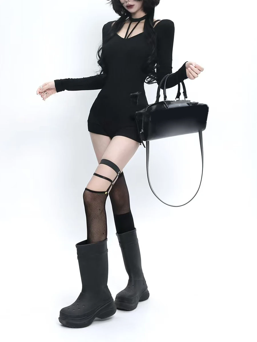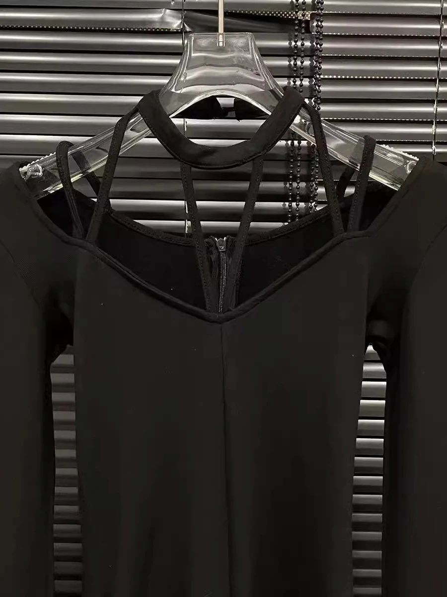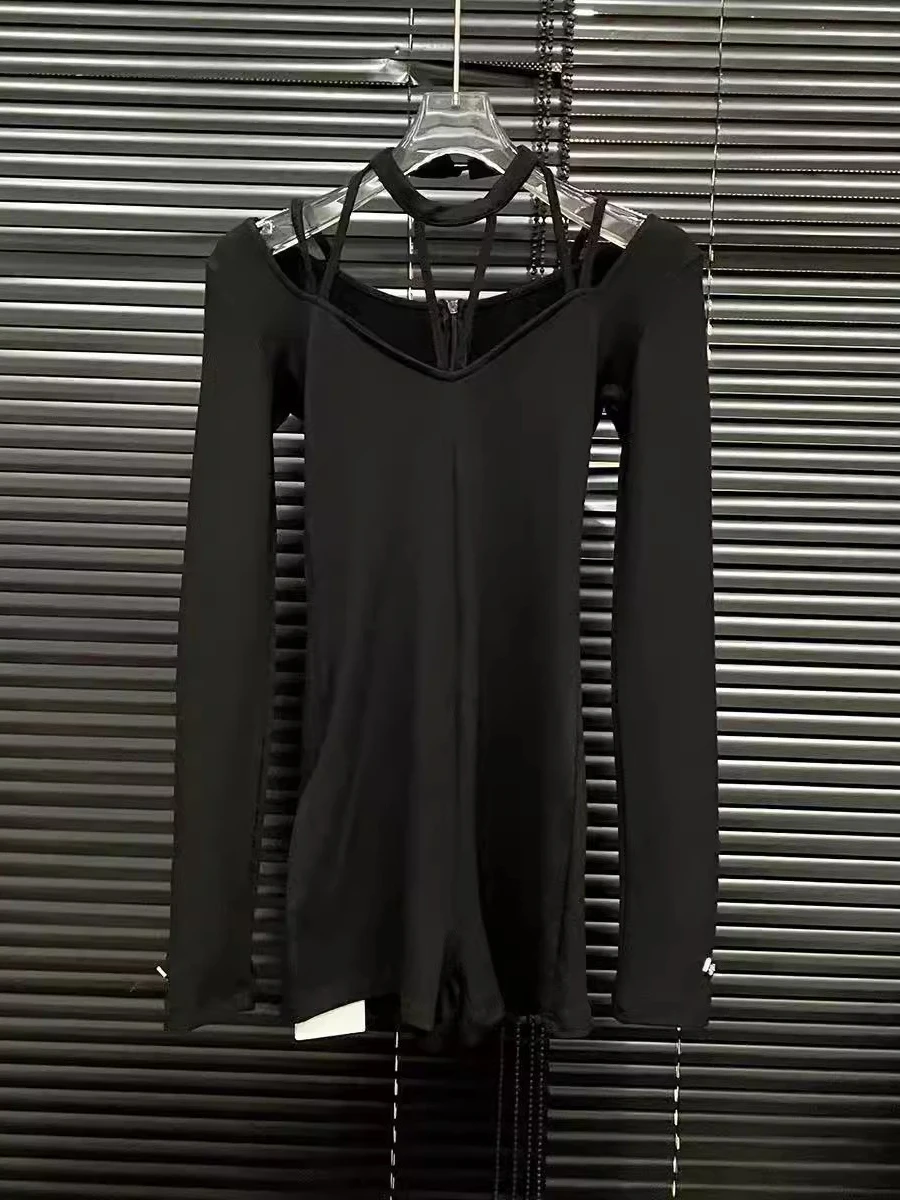 Solid Spliced Lace Up Jumpsuits For Women O Neck Long Sleeveless High Waist Temperament Jumpsuits Female Fashion