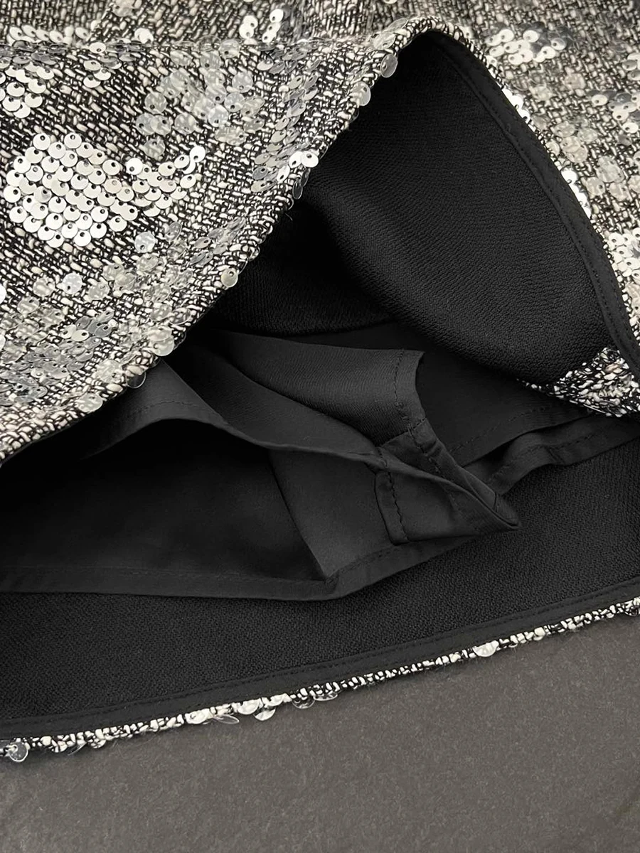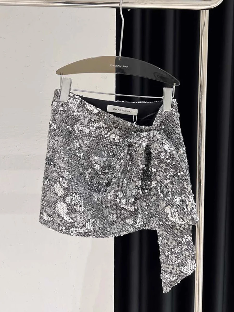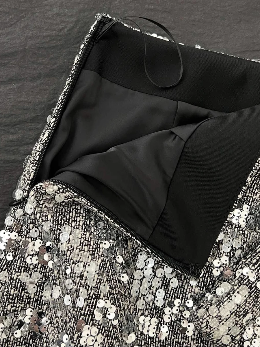 Solid Spliced Lace Up Slimming Dresses For Women High Waist Temperament Patchwork Sequines Skirts Female Fashion