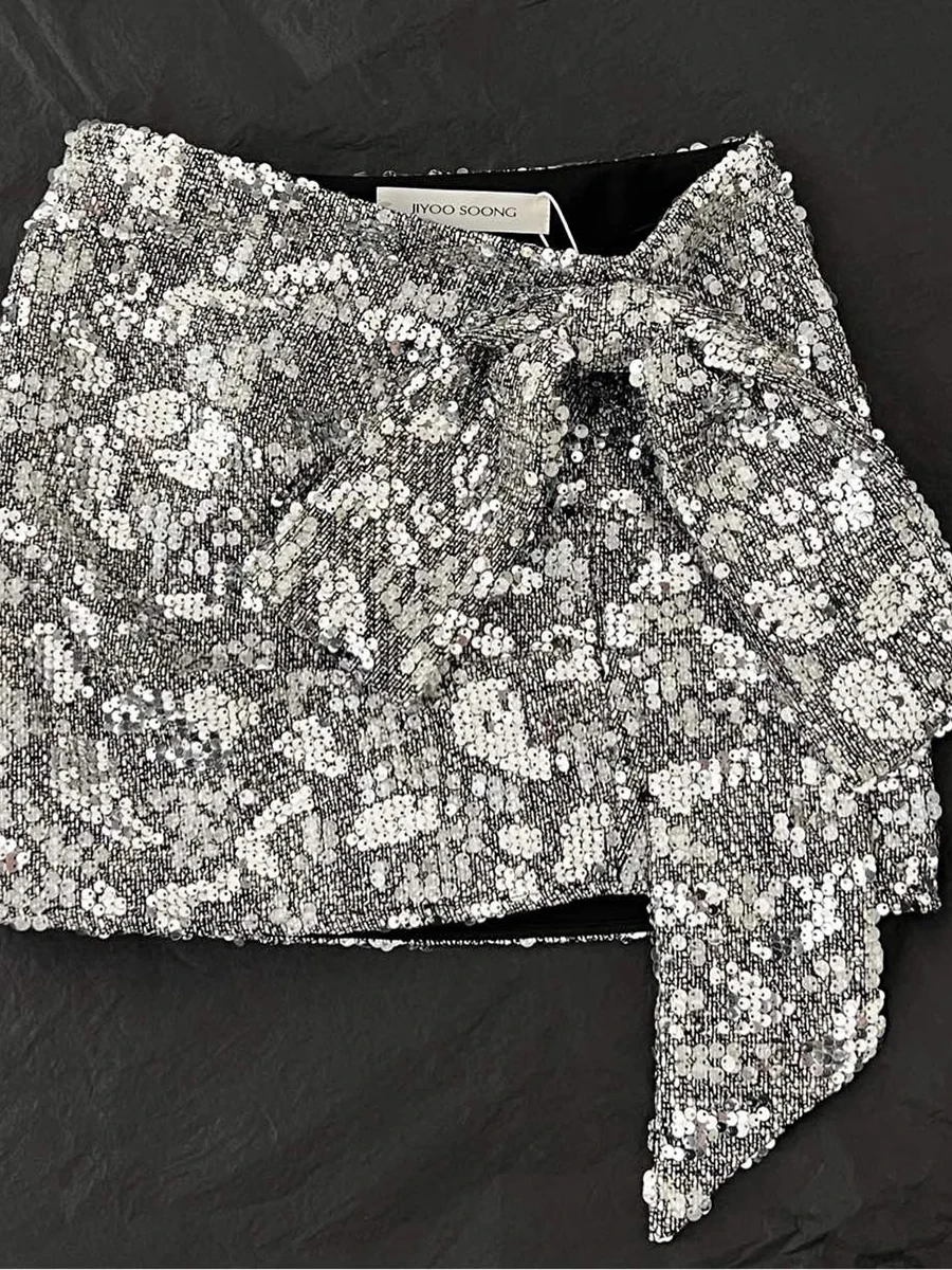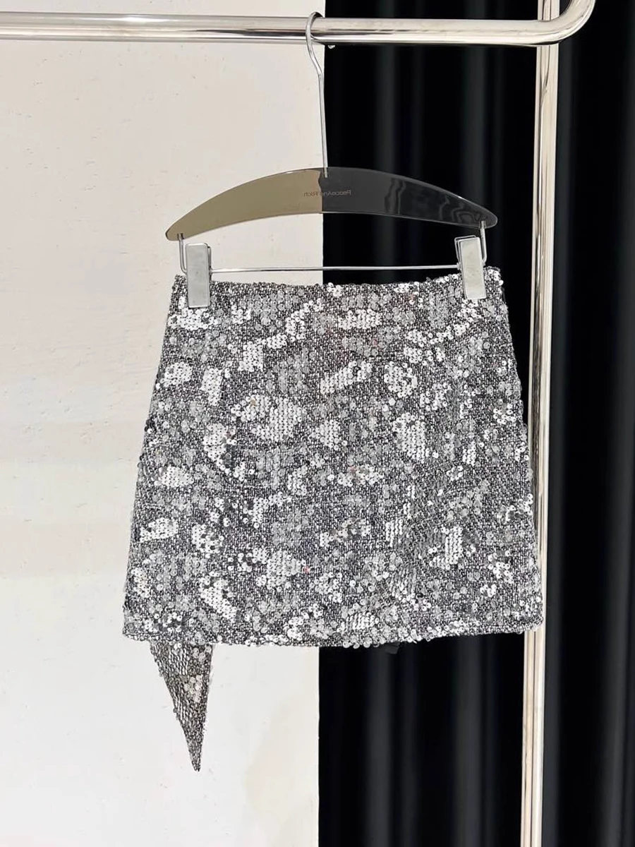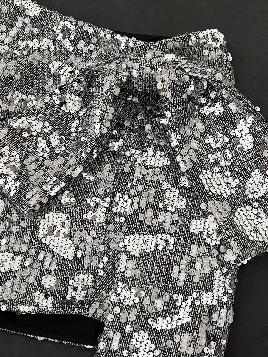 Solid Spliced Lace Up Slimming Dresses For Women High Waist Temperament Patchwork Sequines Skirts Female Fashion