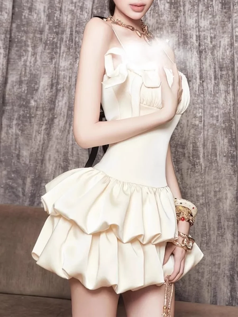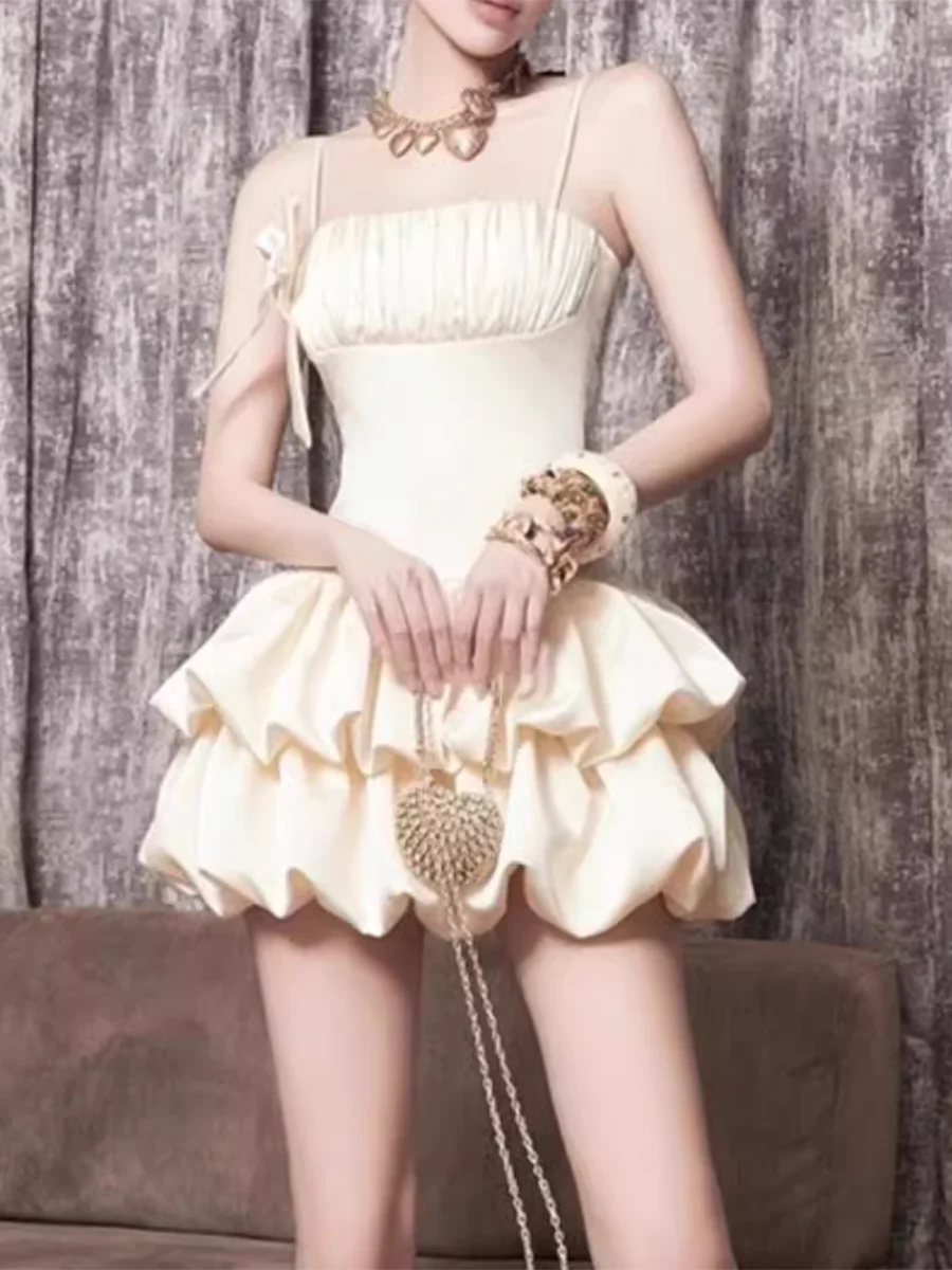 Solid Spliced Ruffles Slimming Mini Dresses For Women Square Neck Sleeveless High Waist Temperament Dress Female