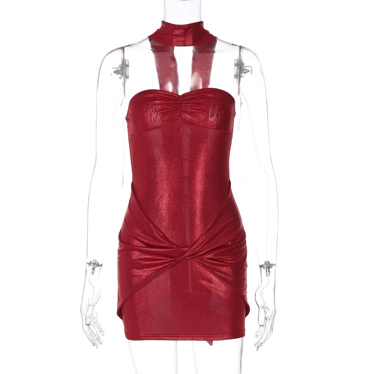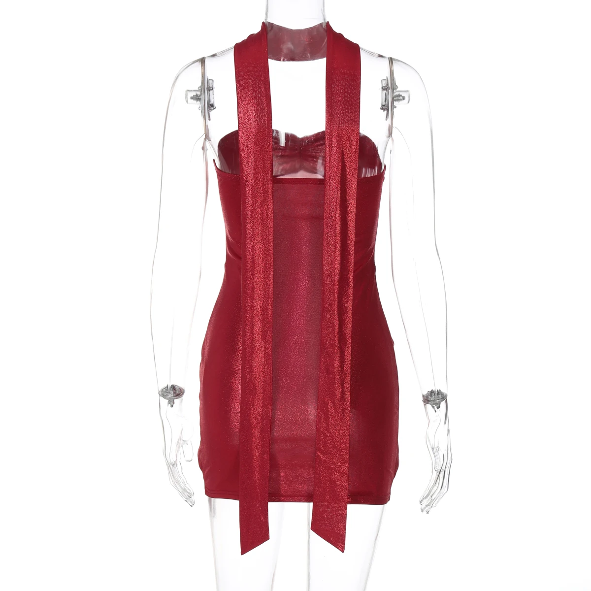 Solid Strapless With Scarf Ruched Draped Sexy Elegant Slim Mini Prom Dress Spring Women Clothes Evening Party Festival