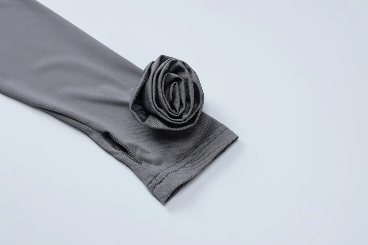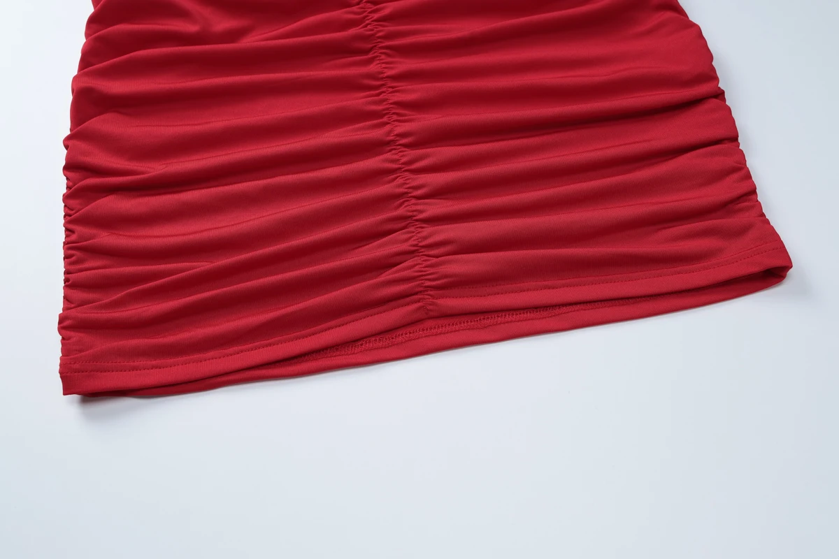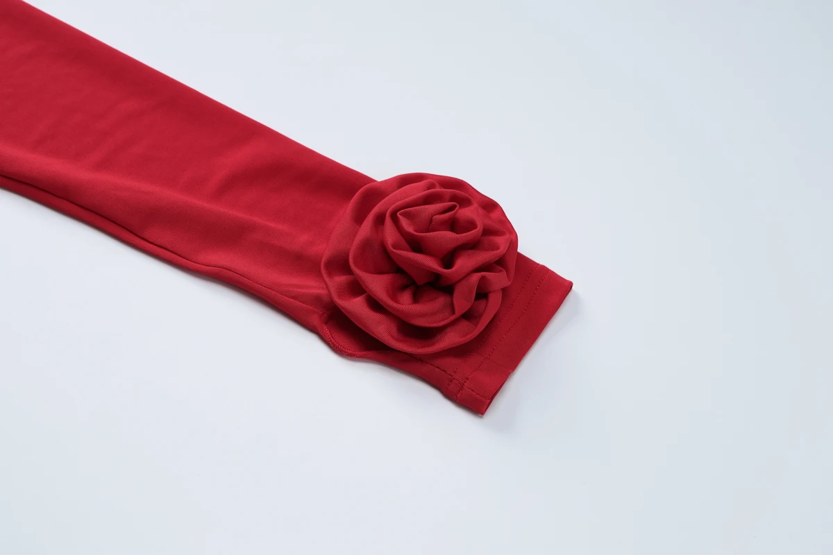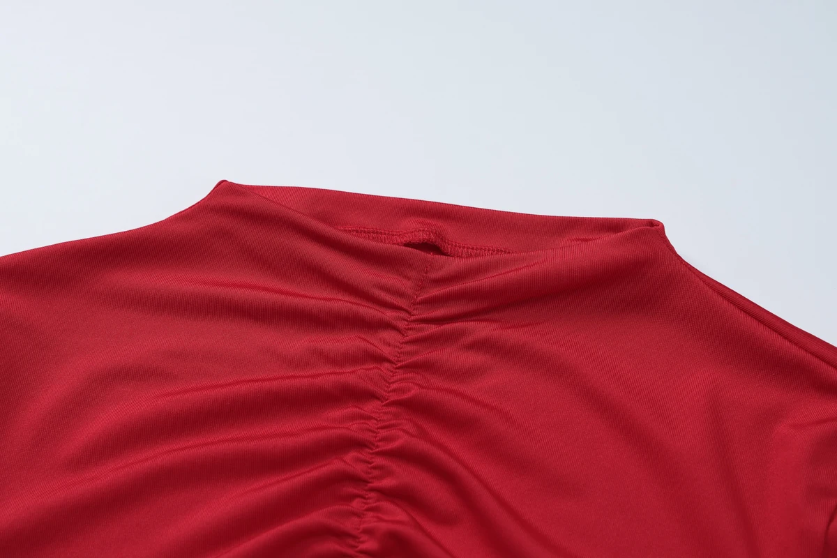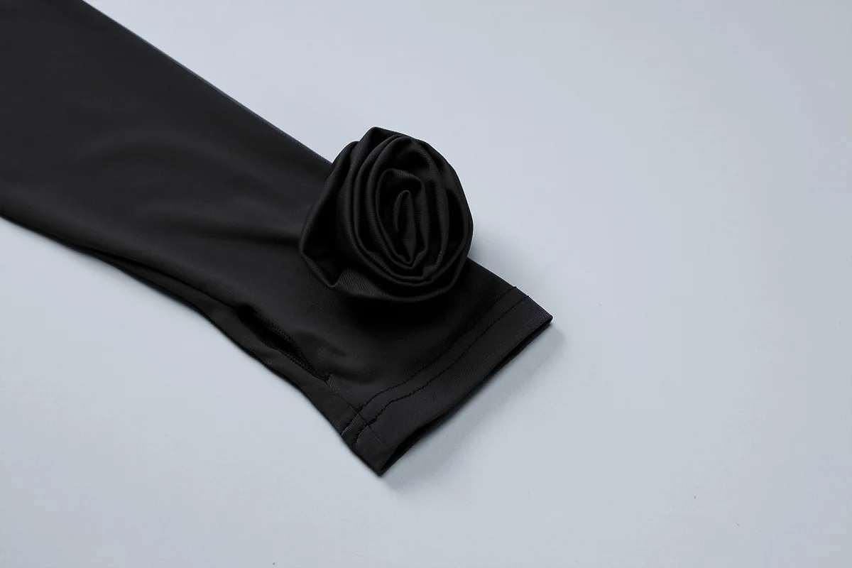 Solid Turtleneck Long Sleeve Ruched Tie Flowers Pleated Sexy Mini Dress Autumn Women Elegant Y2K Outfit Birthday Party