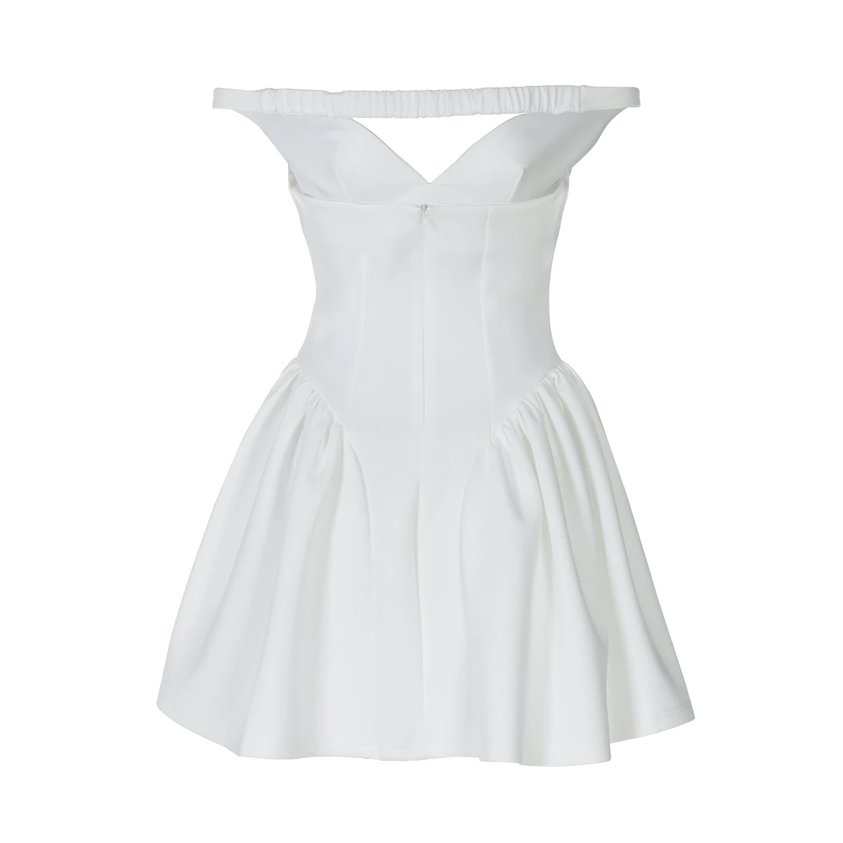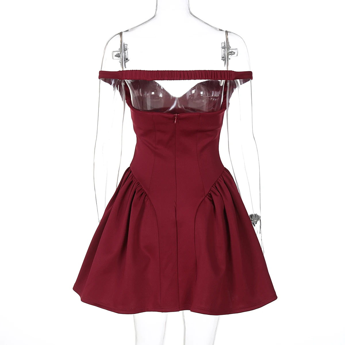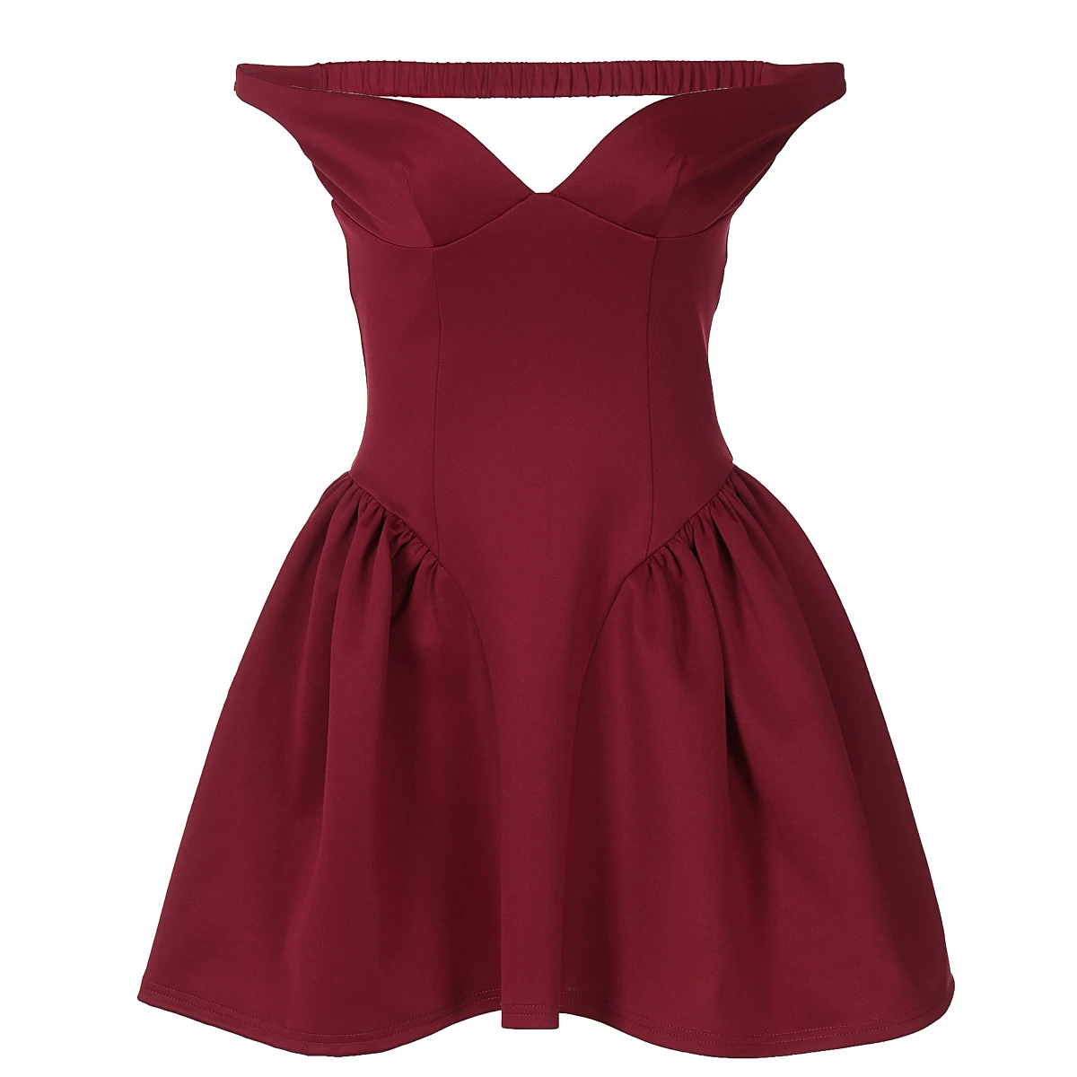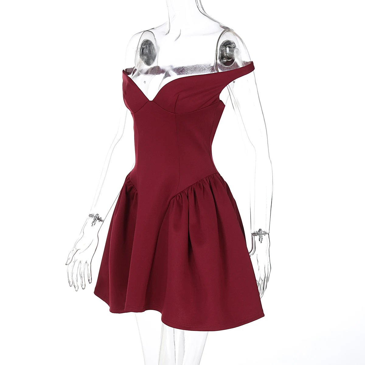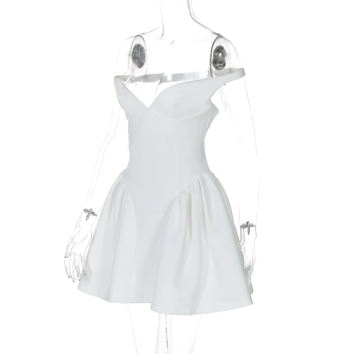 Solid V Neck Backless Slip Zip Up Pleated Elegant Sexy Slim Mini Prom Dress Summer Women Outfits Evening Party Birthday