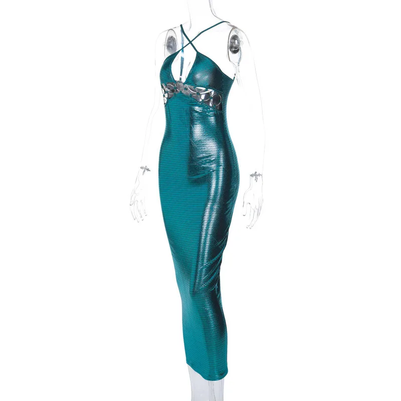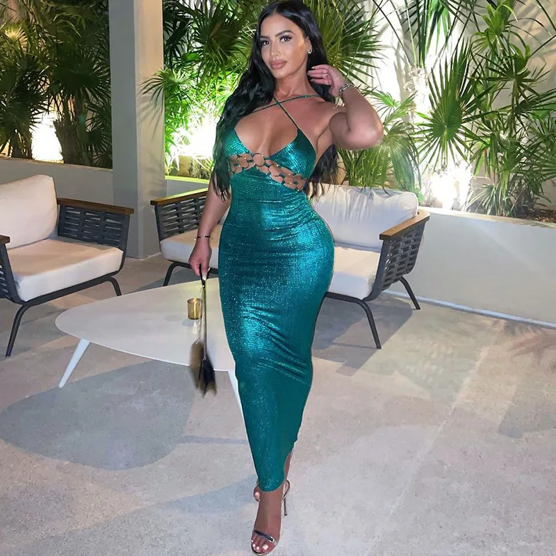 Spaghetti Strap Backless Bodycon Maxi Dress For Women Robe Off-shoulder Hollow Out Strapless Club Party Sexy Dress