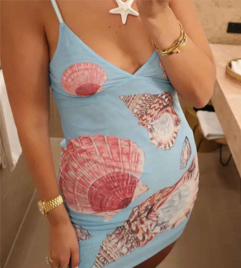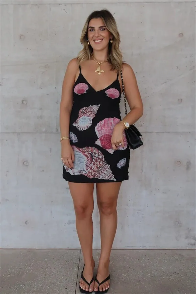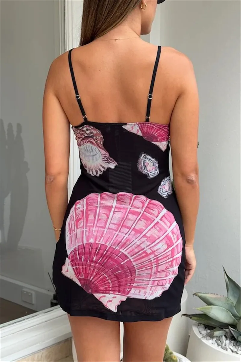 Spaghetti Strap Floral Print Mini Dress For Women Robe Summer New V Neck Sleeveless Backless Print Beach Holiday Dress