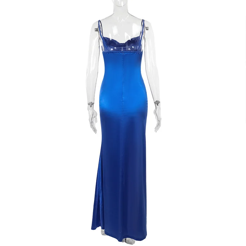 Spaghetti Strap Thigh High Split Sexy Maxi Dress For Women Elegant Off-shoulder Backless Bodycon Club Party Sexy Dress