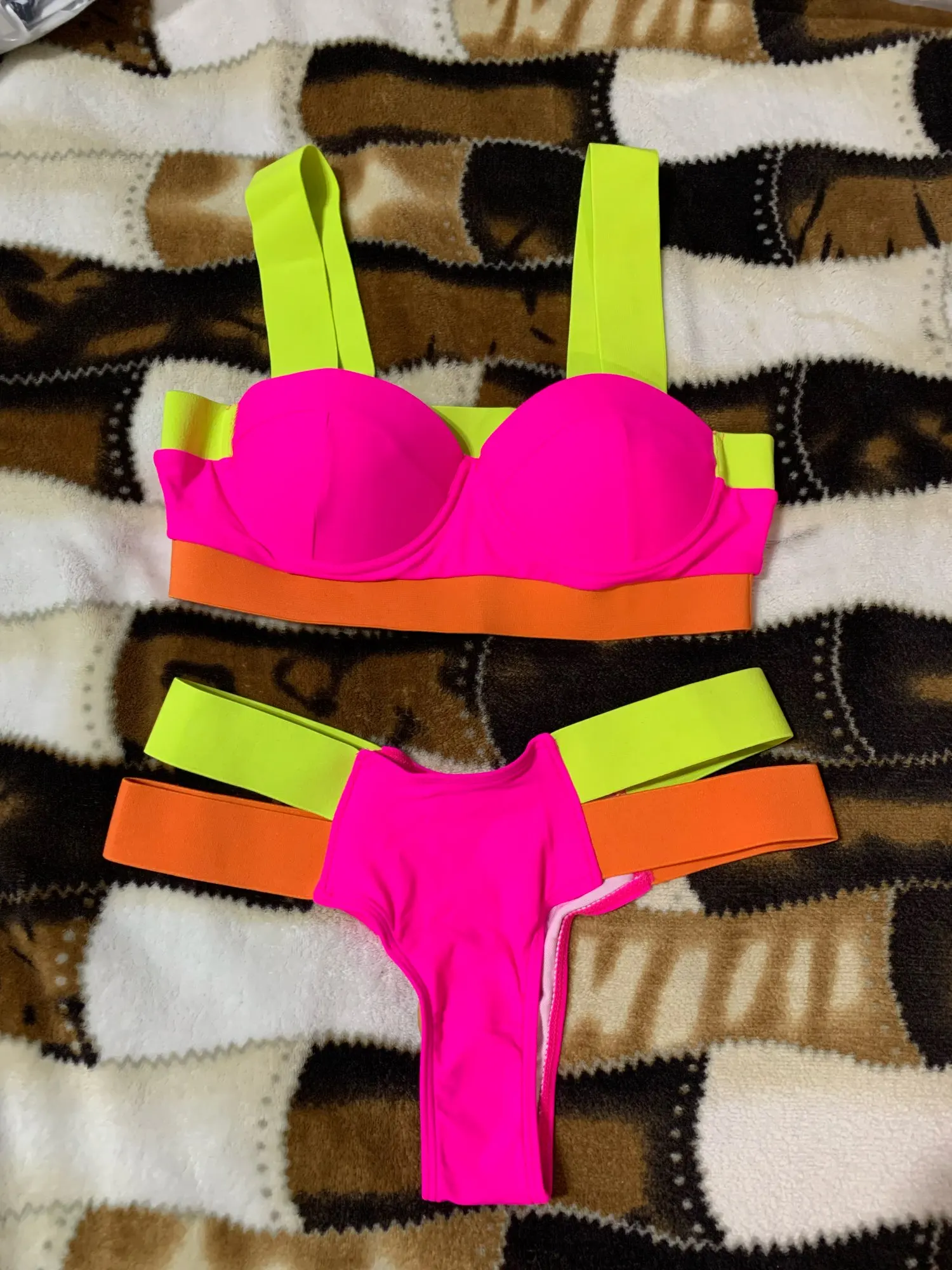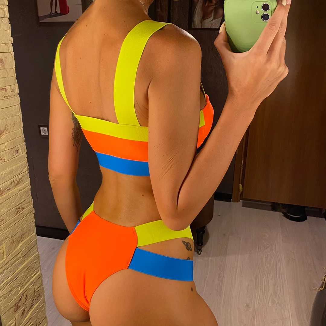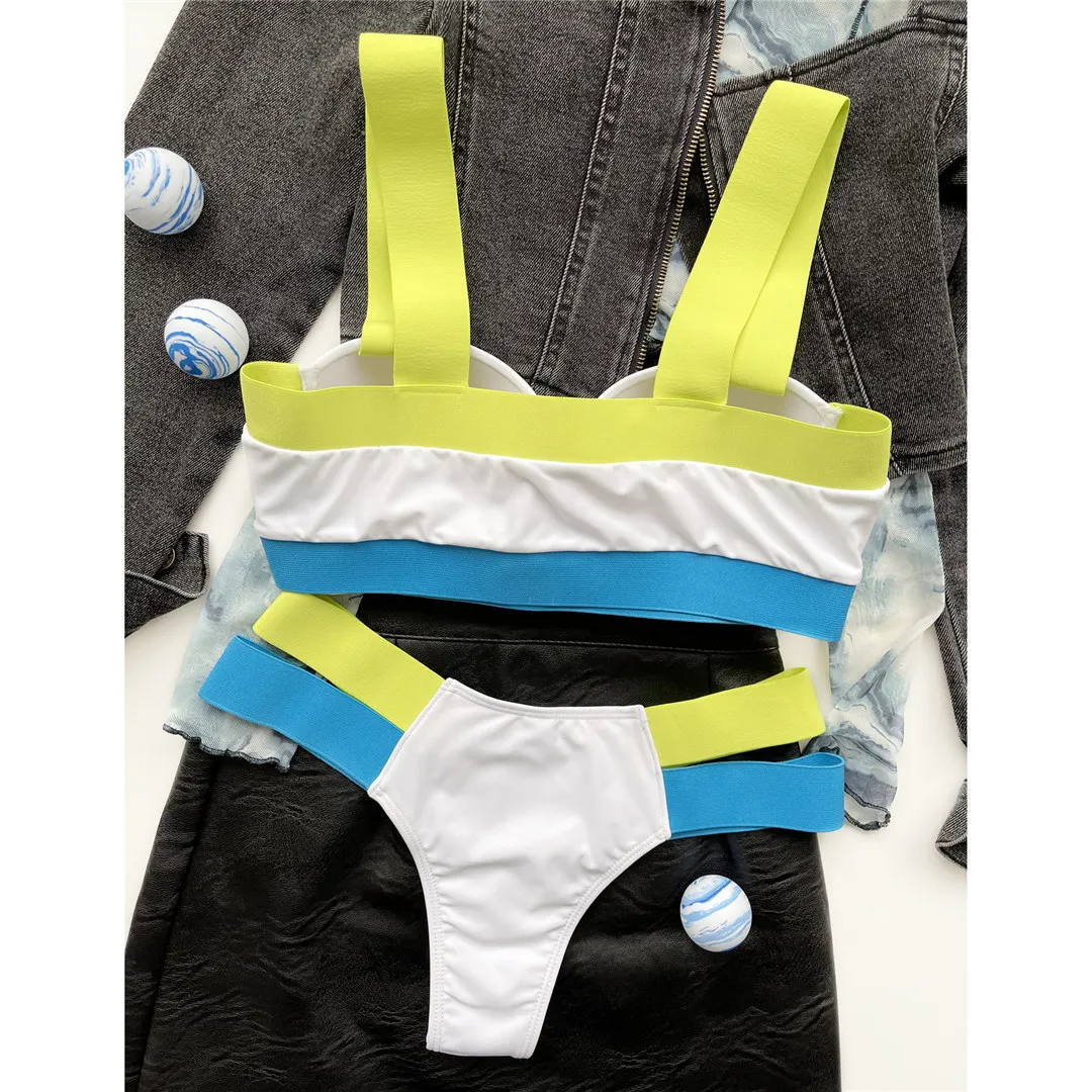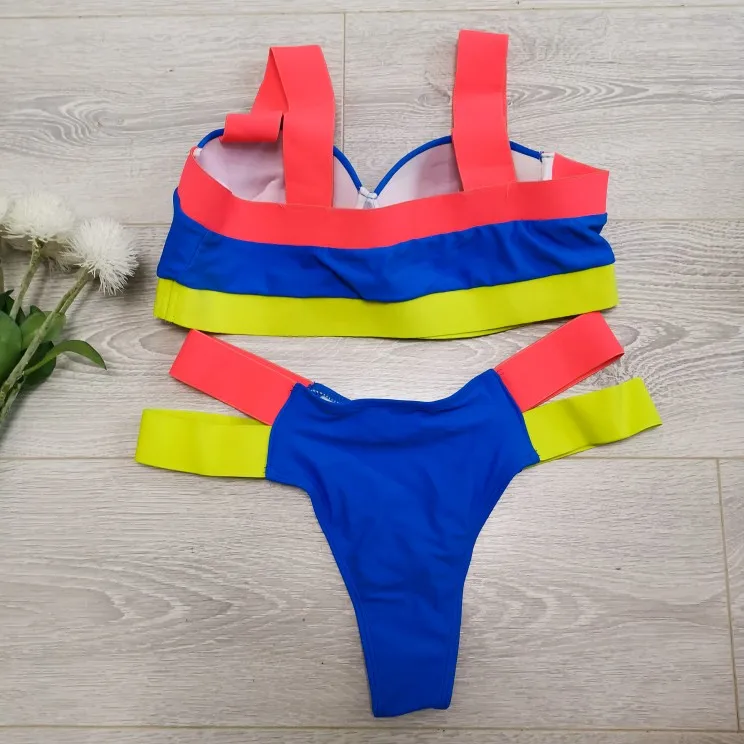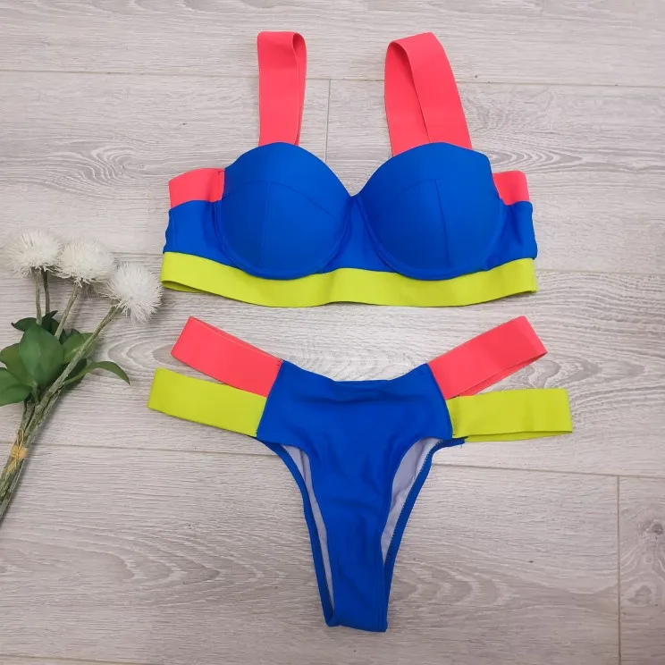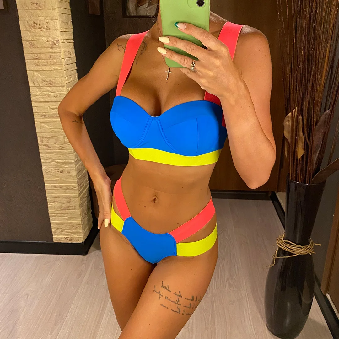 Splicing Push Up Bikini Female Swimwear Women Swimsuit Two-piece Bikini set With Bra Cup Strappy Bather Bathing Suit Swim V2707E