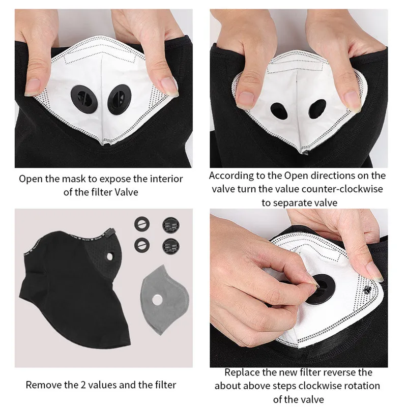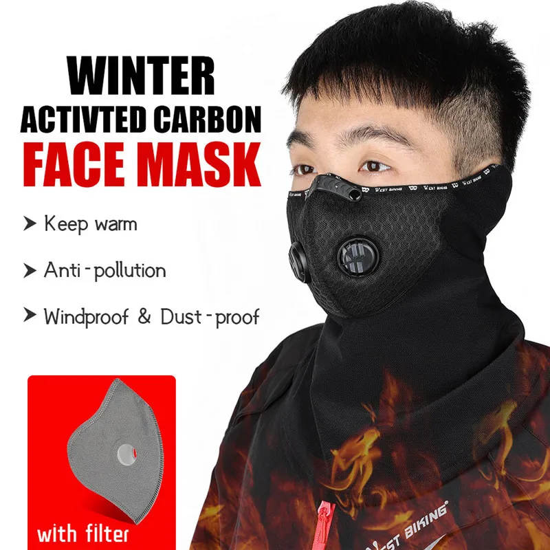 Sport Cycling Headwear Winter Balaclava Face Cover With Activated Carbon Filter Ski Motorcycle Fleece Head Cap Hat