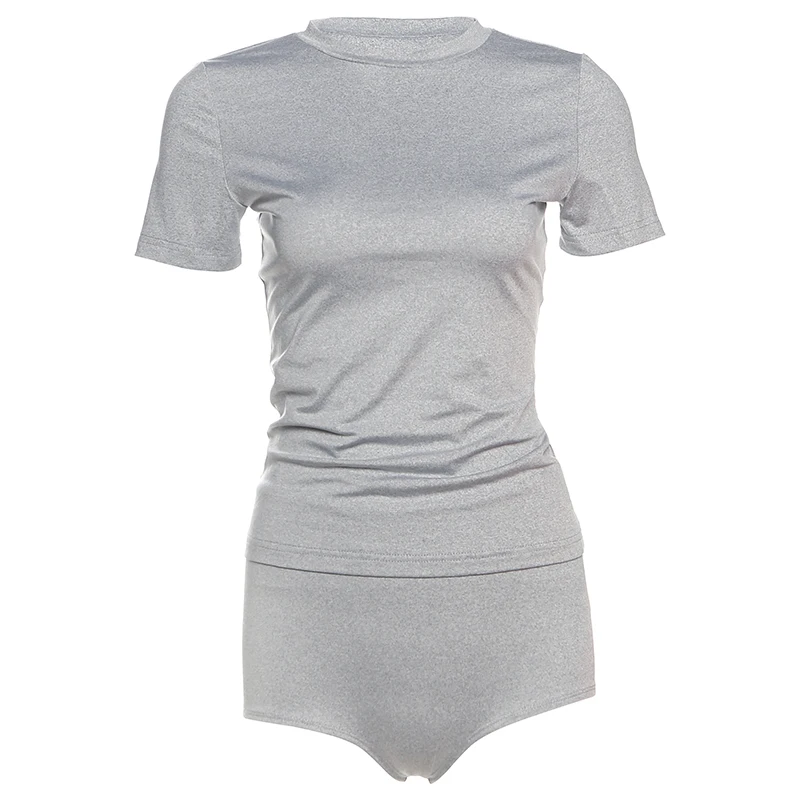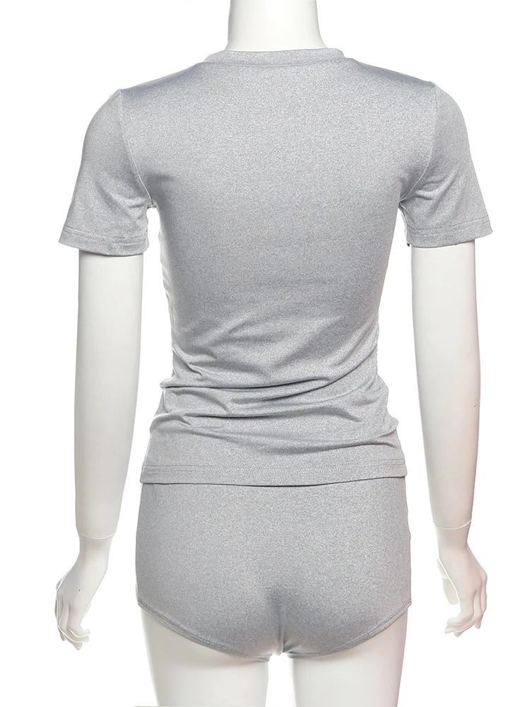 Sporty 2-Piece Set Women Skinny High Elasticity o-Neck t-Shirts+Mini Shorts Summer Classic Simple Basic Matching Suits